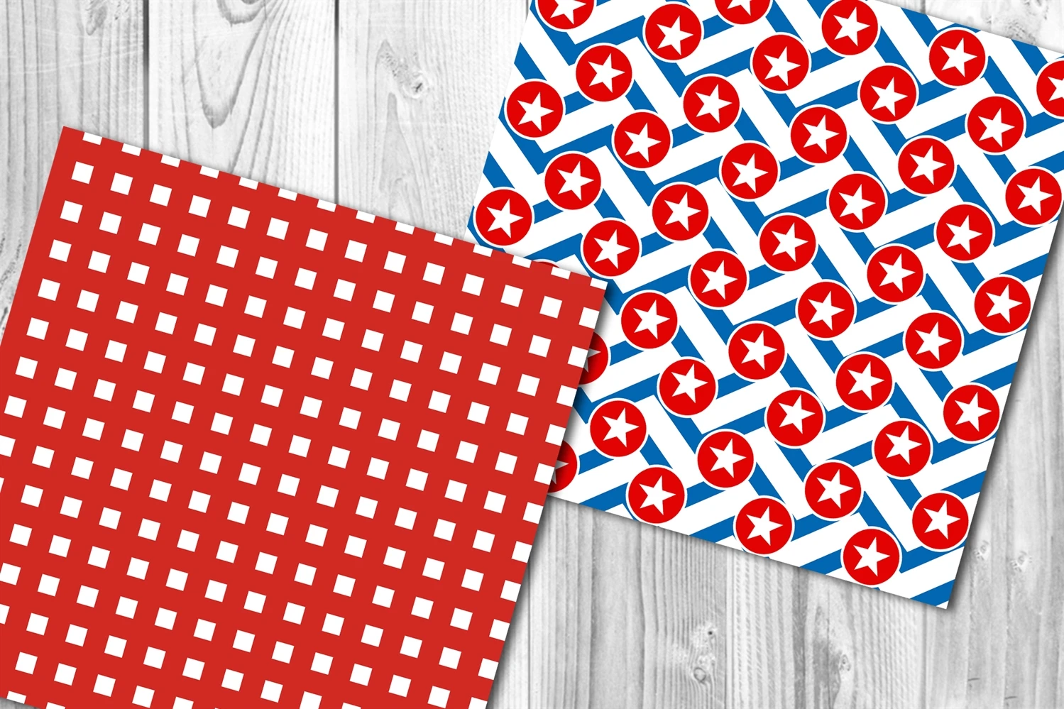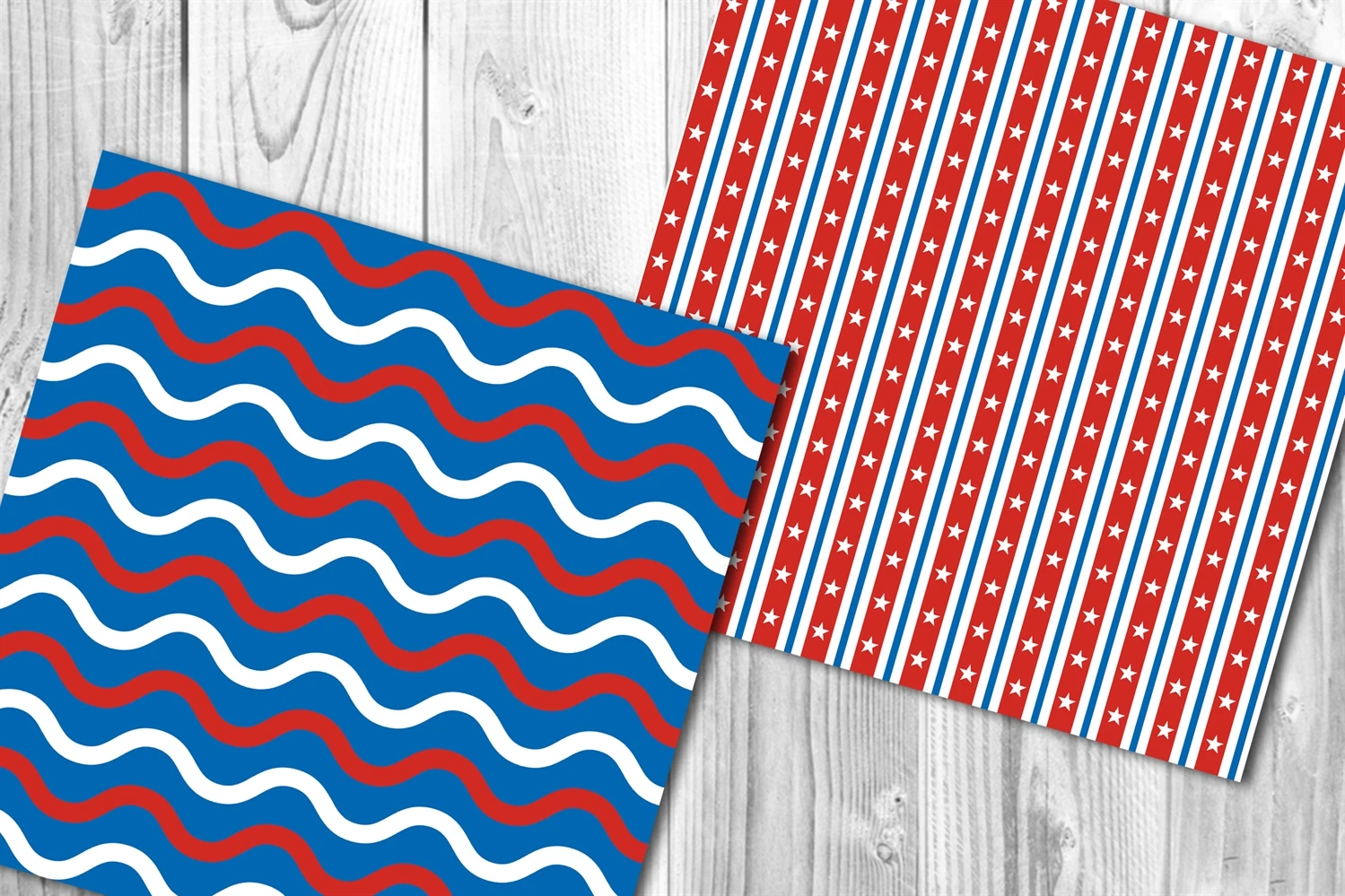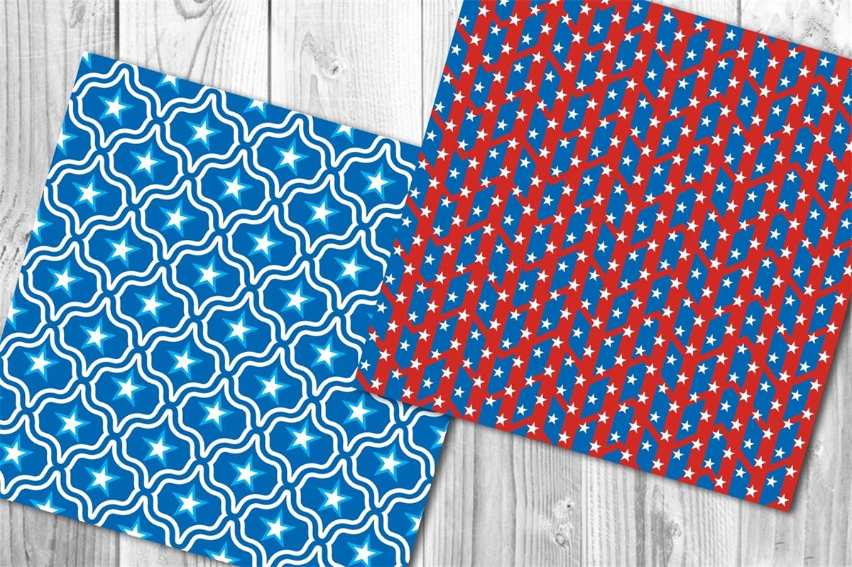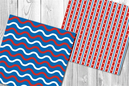 Memorial Day, Patriotic, Independence Day, 4th of July Digital Paper Set 2 - Stars & Stripes Red White and Royal Blue American Flag Theme Color Seamless Pattern Set