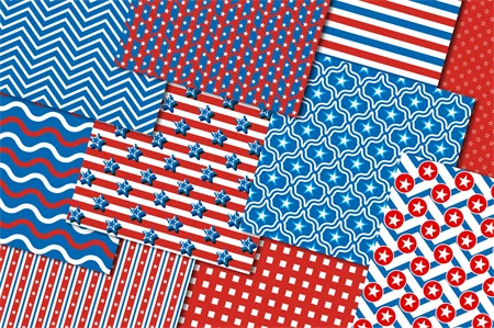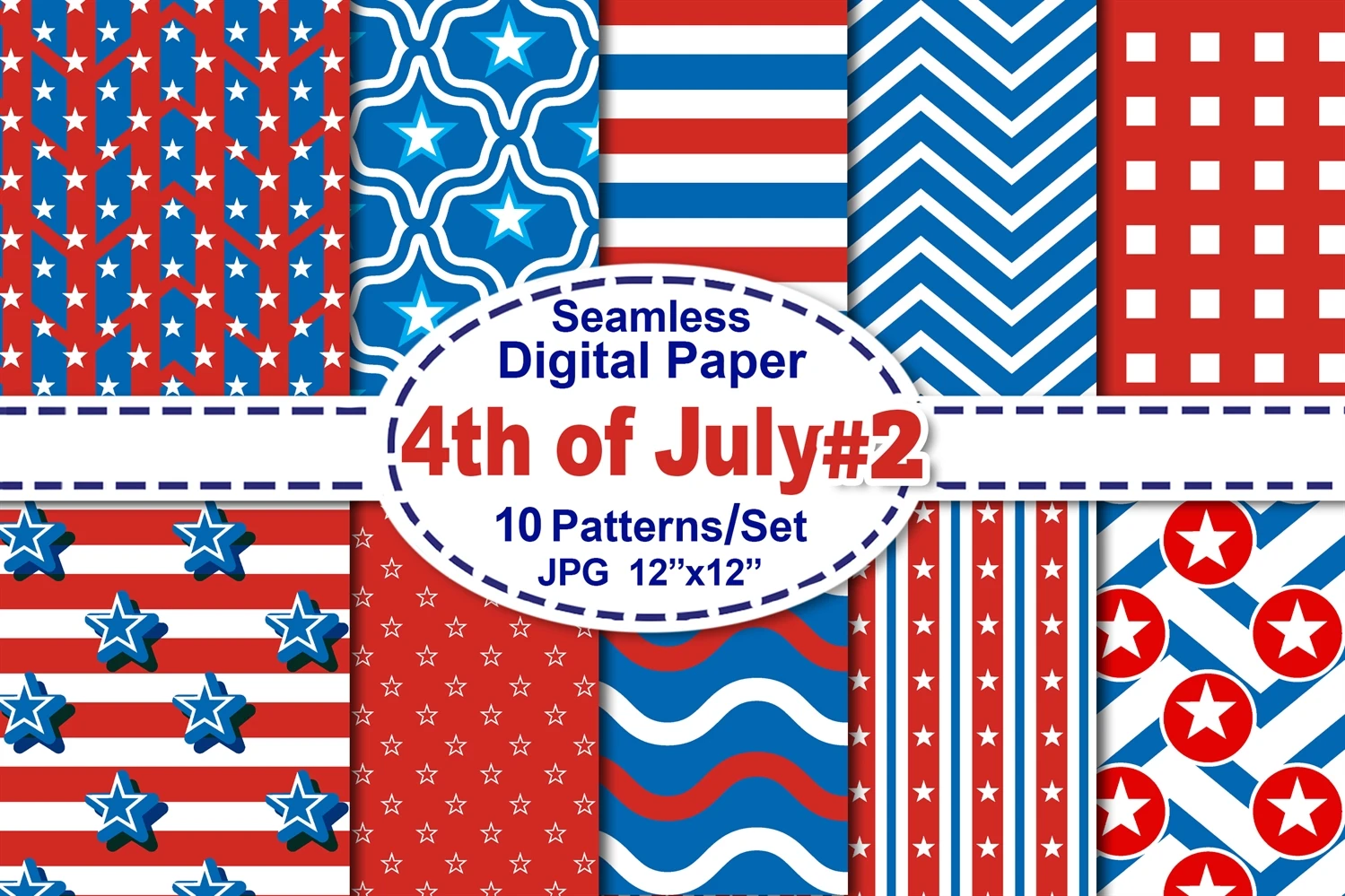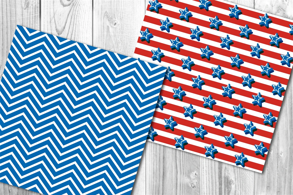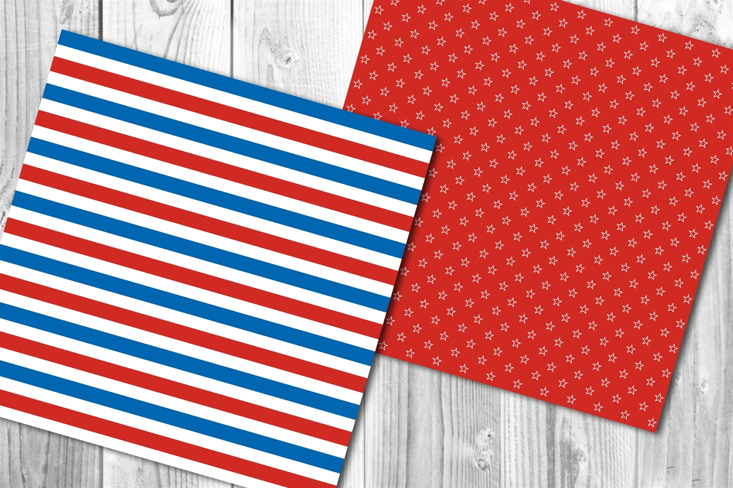 Memorial Day, Patriotic, Independence Day, 4th of July Digital Paper Set 2 - Stars & Stripes Red White and Royal Blue American Flag Theme Color Seamless Pattern Set