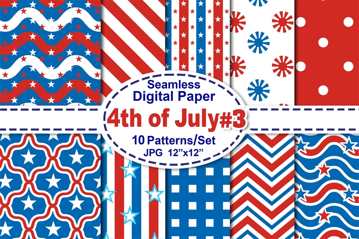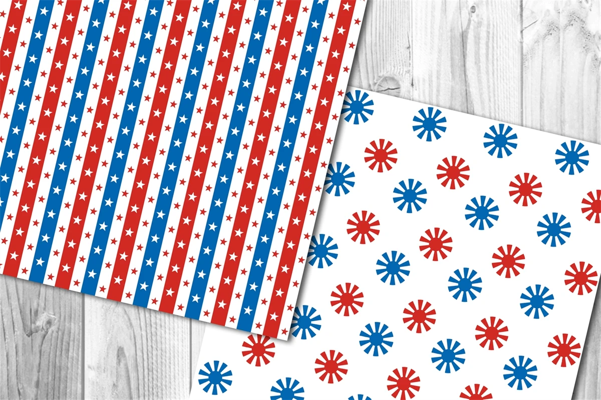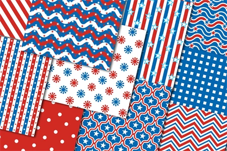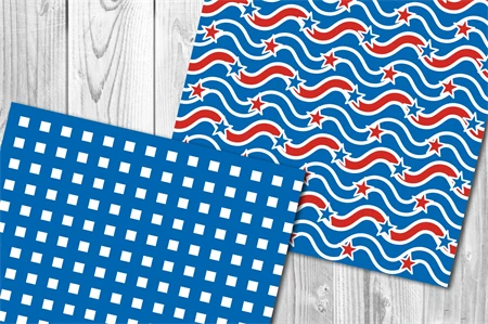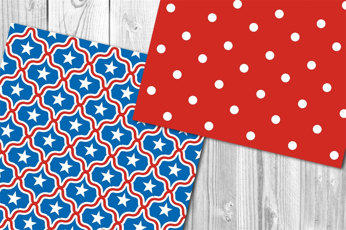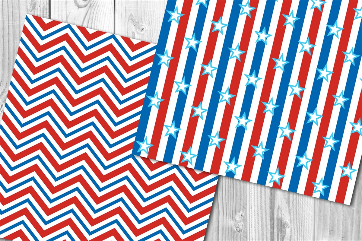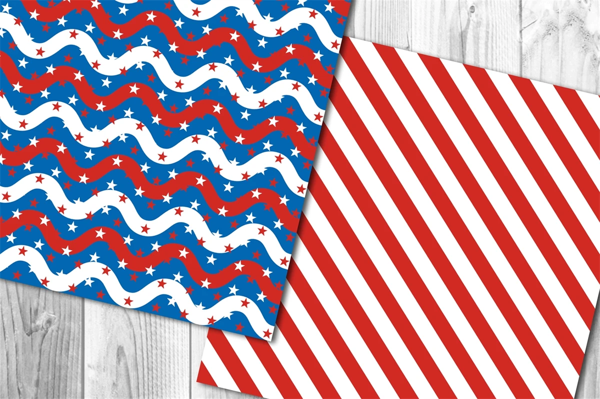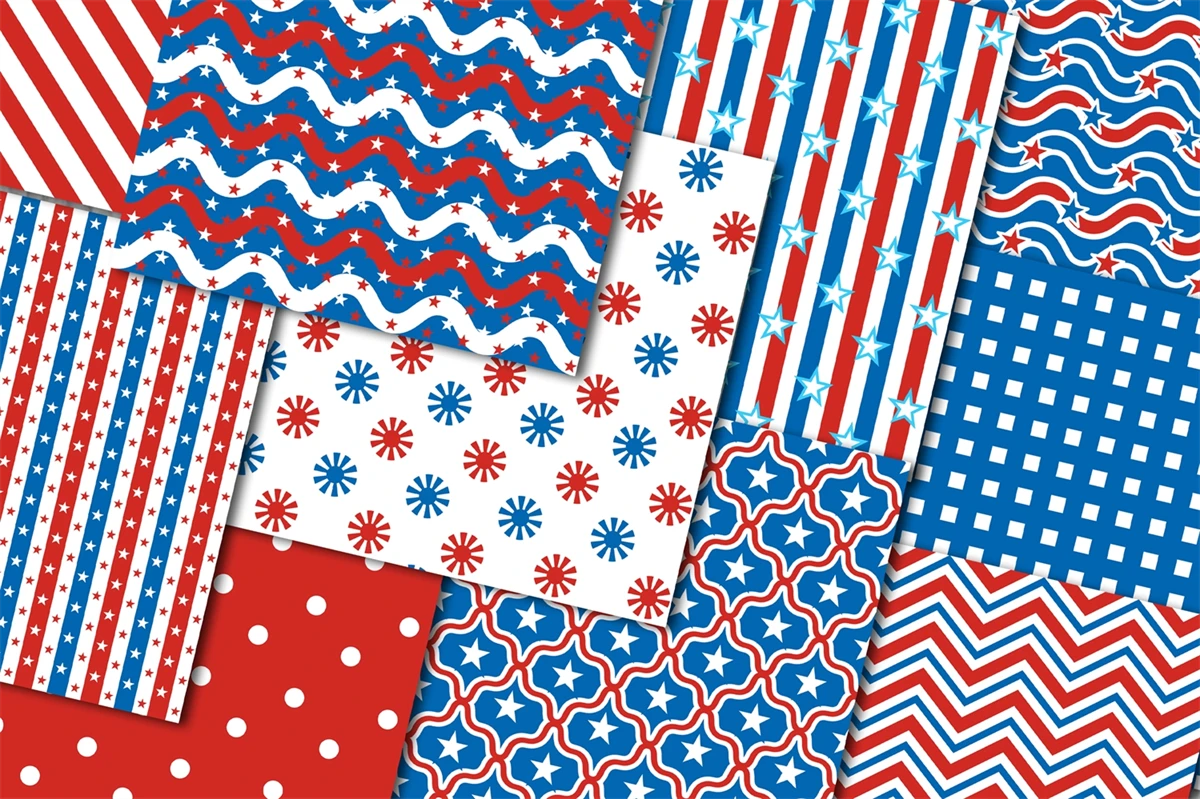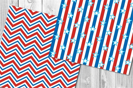 Memorial Day, Patriotic, Independence Day, 4th of July Digital Paper Set 3 - Stars & Stripes Red White and Royal Blue American Flag Theme Color Seamless Pattern Set