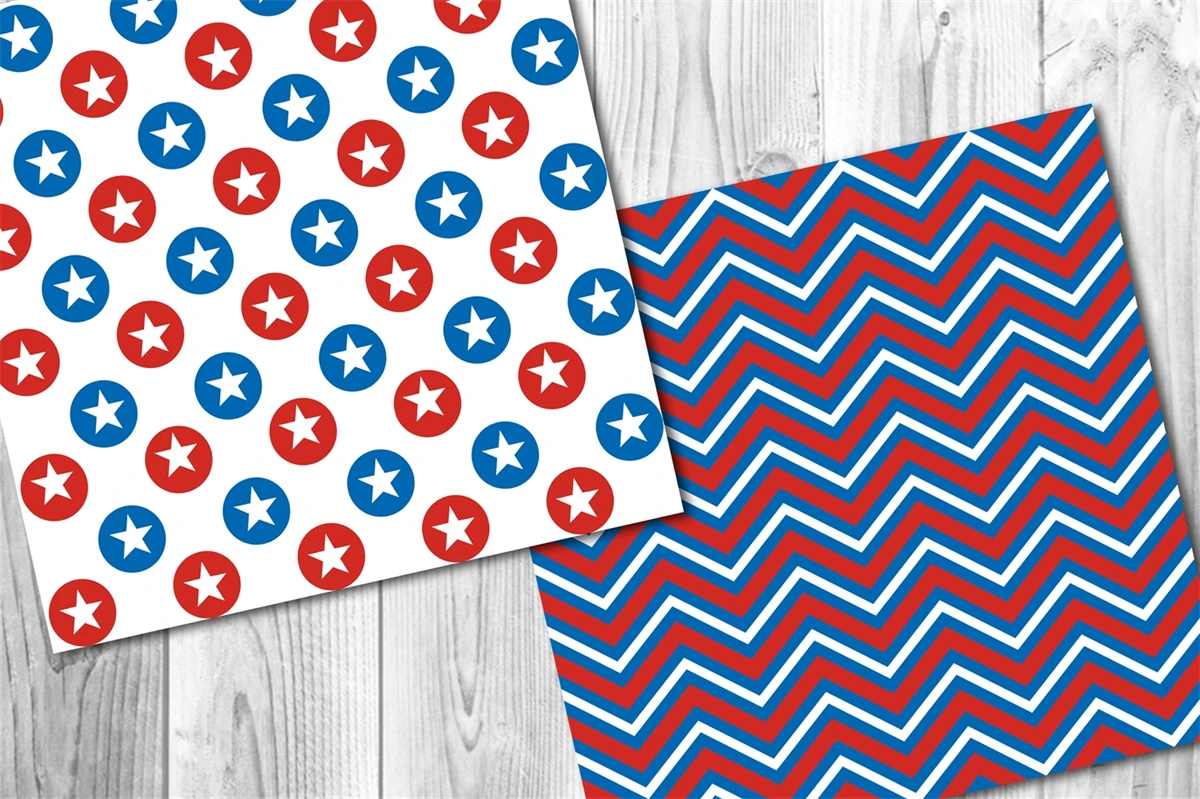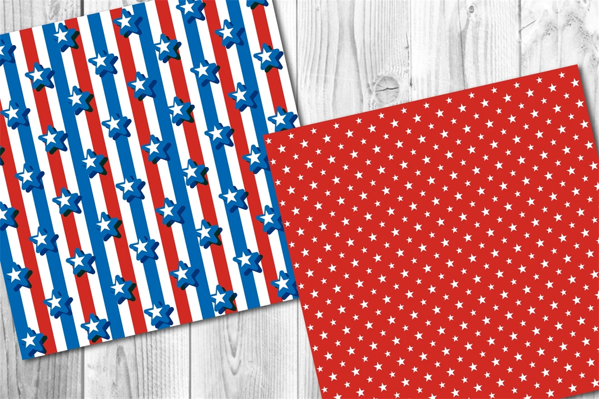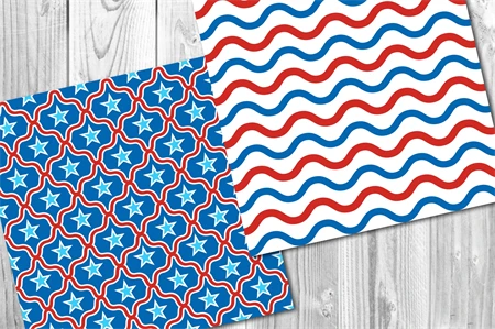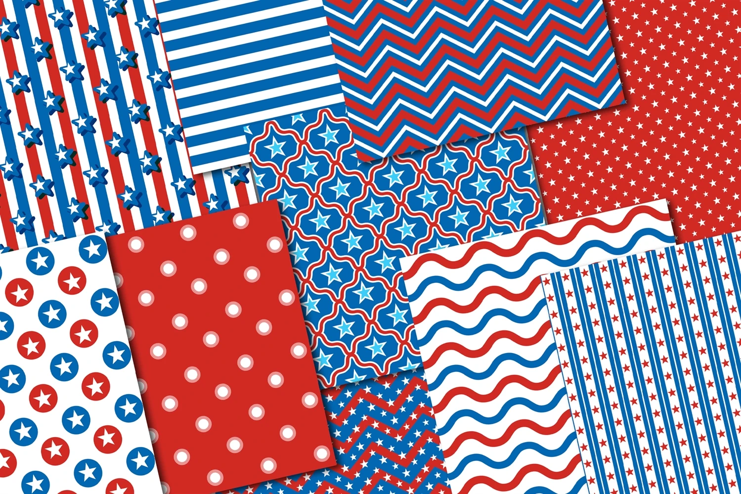 Memorial Day, Patriotic, Independence Day, 4th of July Digital Paper Set 4 - Stars & Stripes Red White and Royal Blue American Flag Theme Color Seamless Pattern Set
