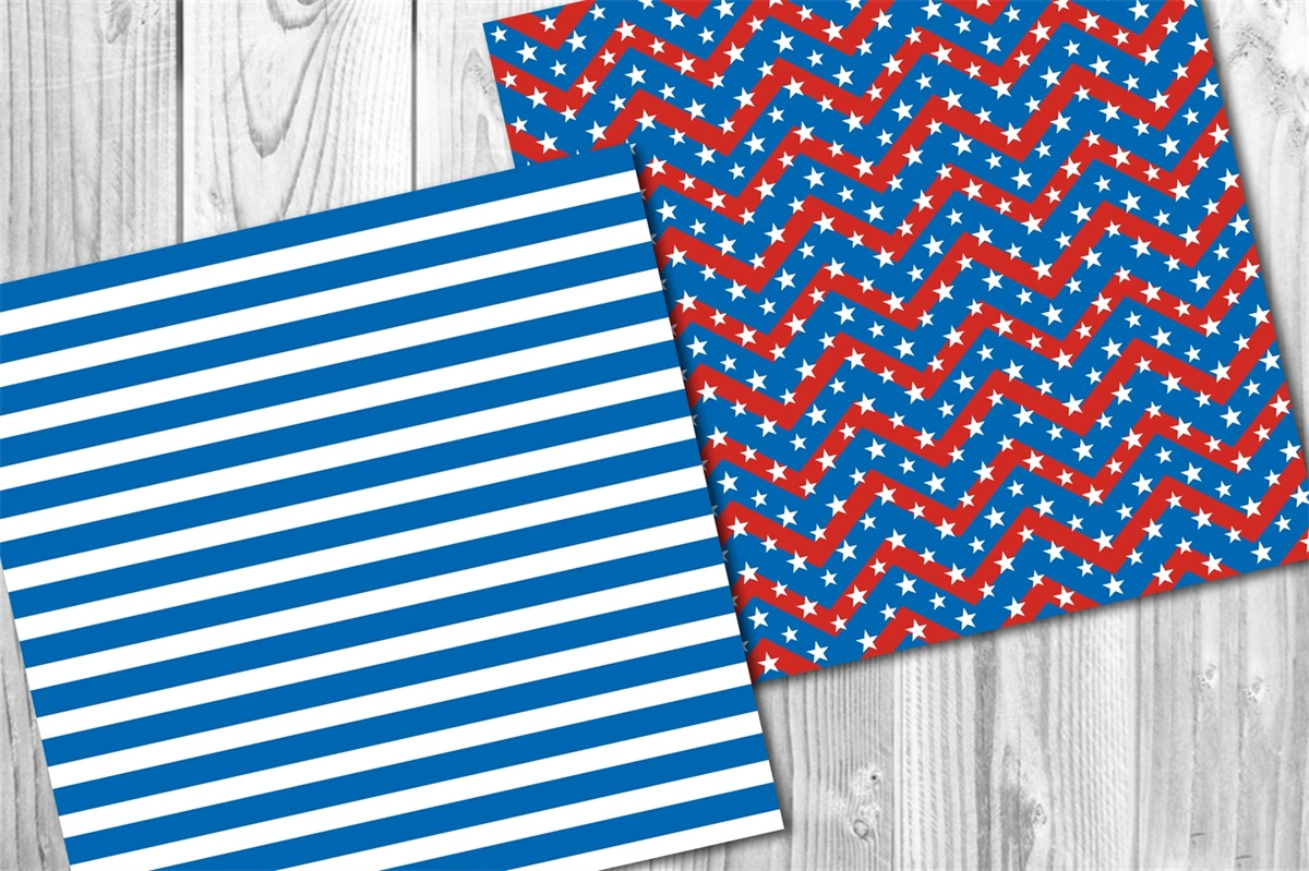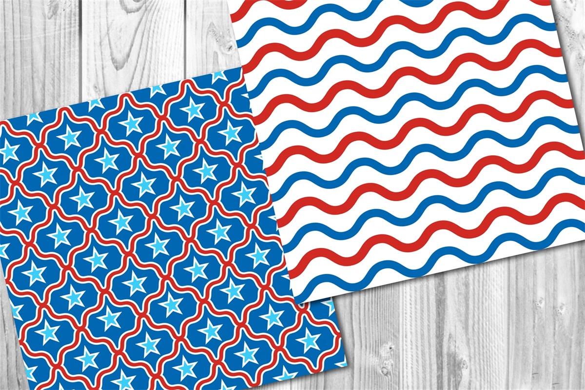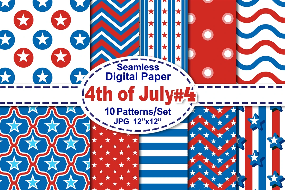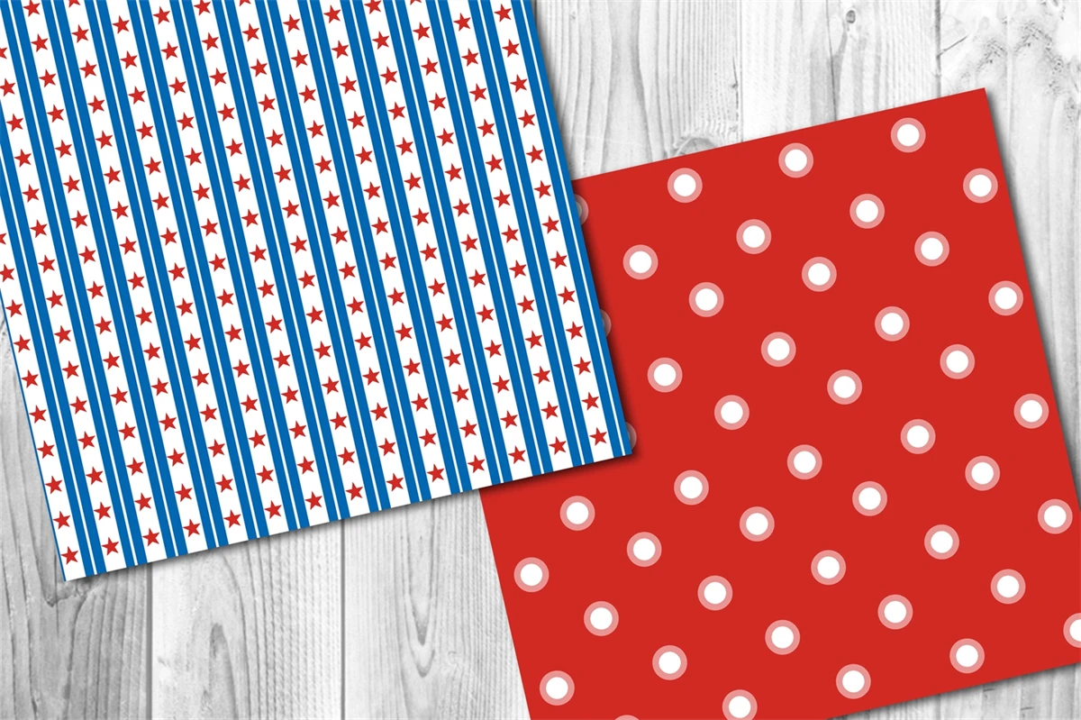 Memorial Day, Patriotic, Independence Day, 4th of July Digital Paper Set 4 - Stars & Stripes Red White and Royal Blue American Flag Theme Color Seamless Pattern Set