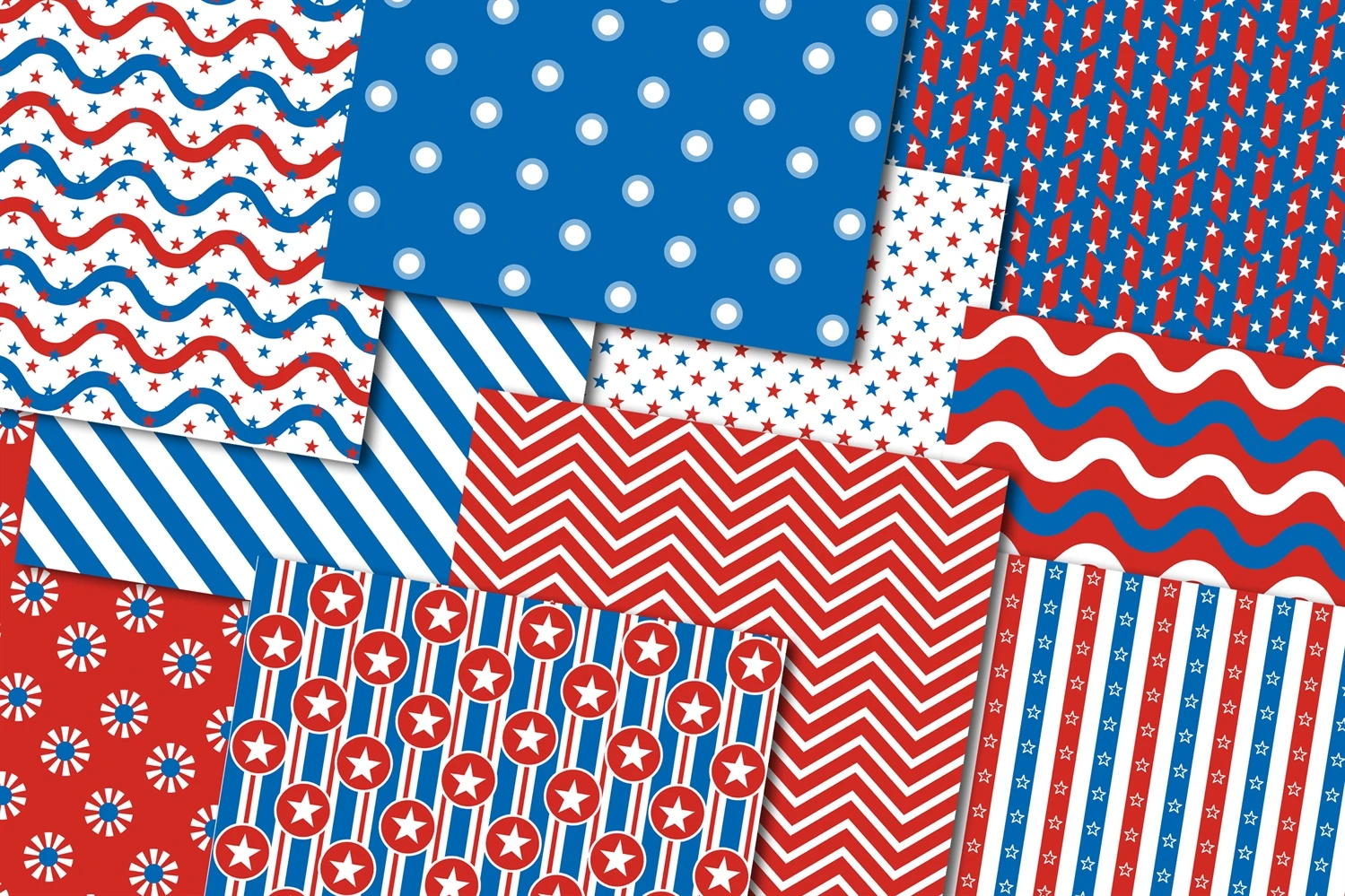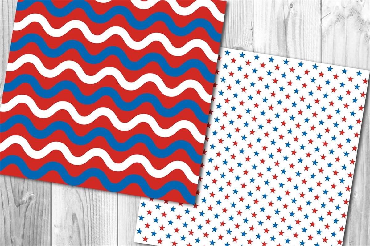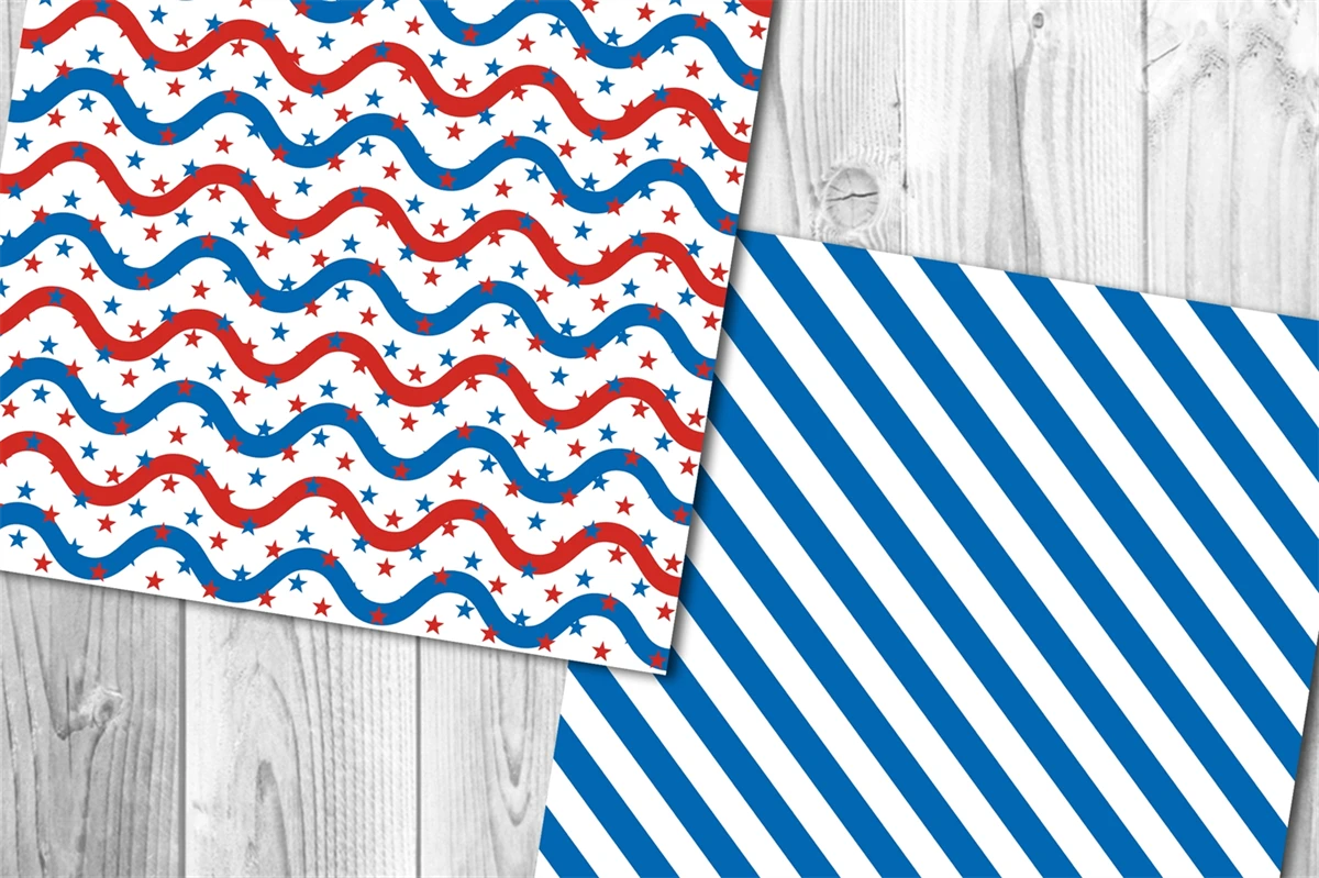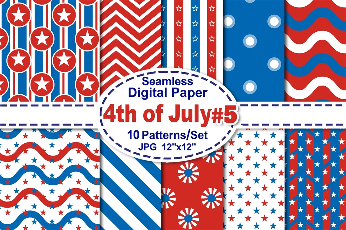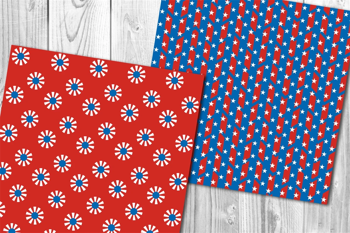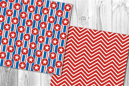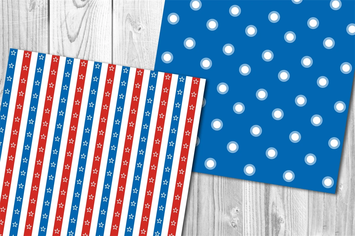 Memorial Day, Patriotic, Independence Day, 4th of July Digital Paper Set 5 - Stars & Stripes Red White and Royal Blue American Flag Theme Color Seamless Pattern Set