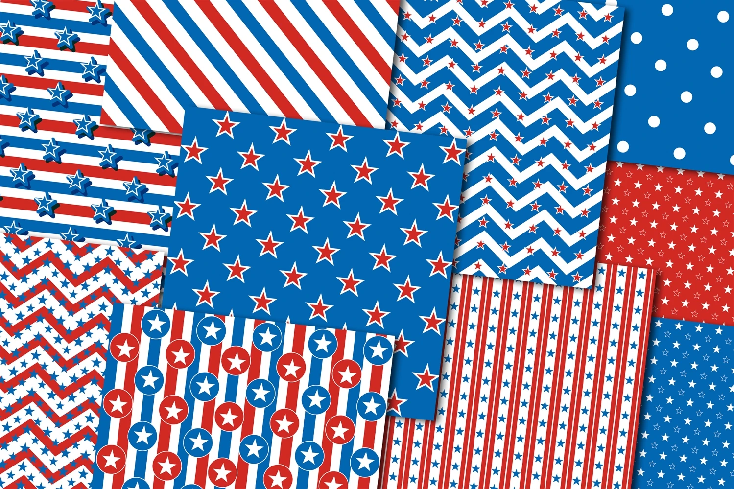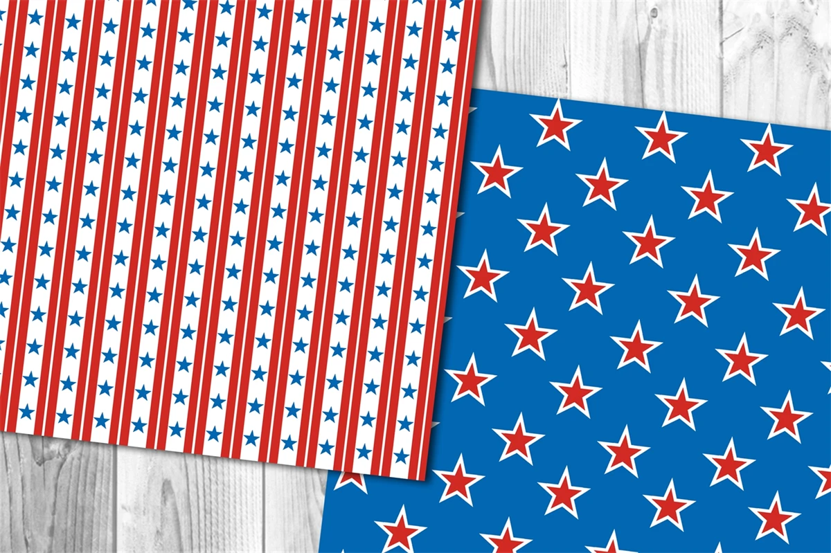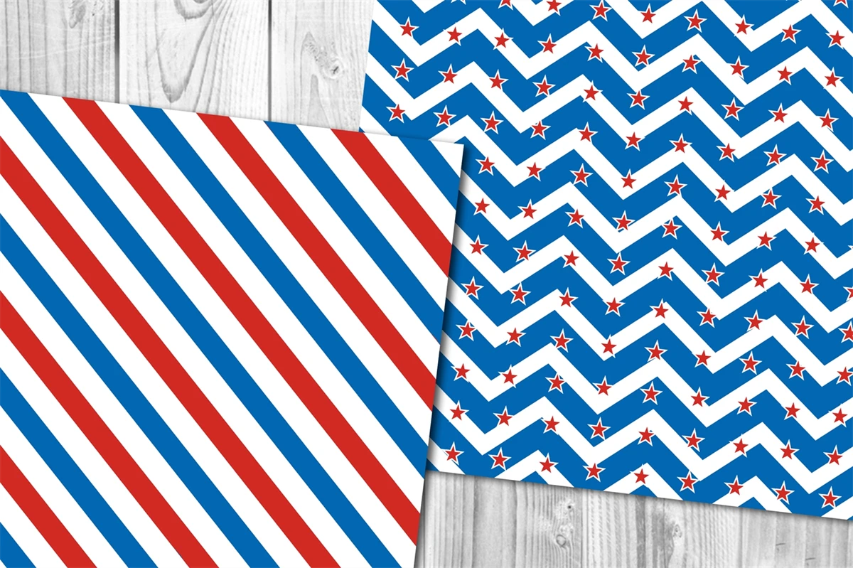 Memorial Day, Patriotic, Independence Day, 4th of July Digital Paper Set 7 - Stars & Stripes Red White and Royal Blue American Flag Theme Color Seamless Pattern Set
