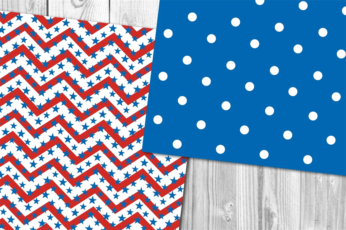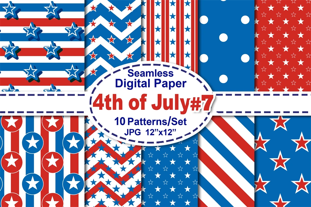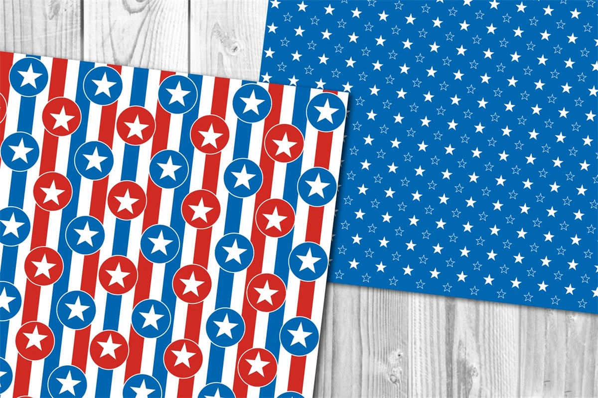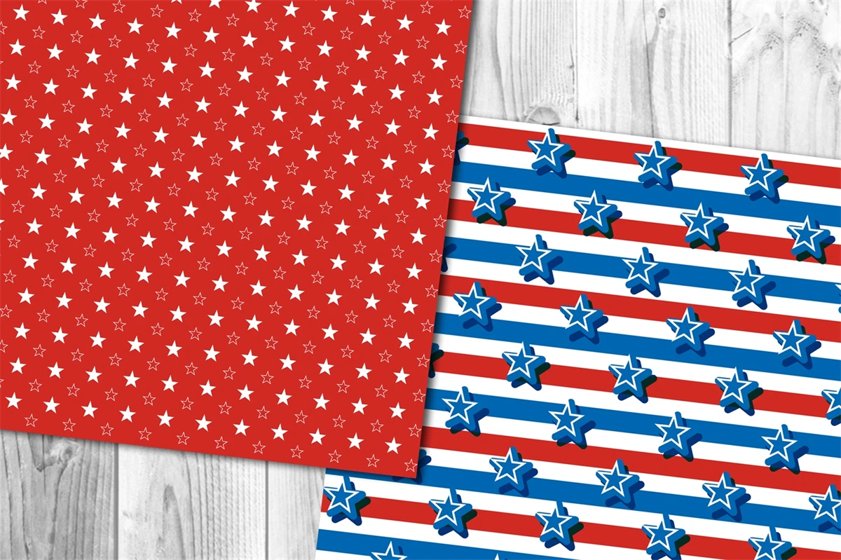 Memorial Day, Patriotic, Independence Day, 4th of July Digital Paper Set 7 - Stars & Stripes Red White and Royal Blue American Flag Theme Color Seamless Pattern Set