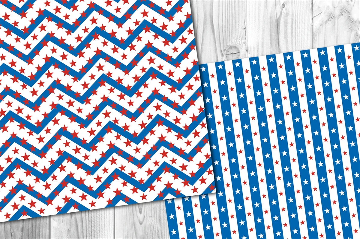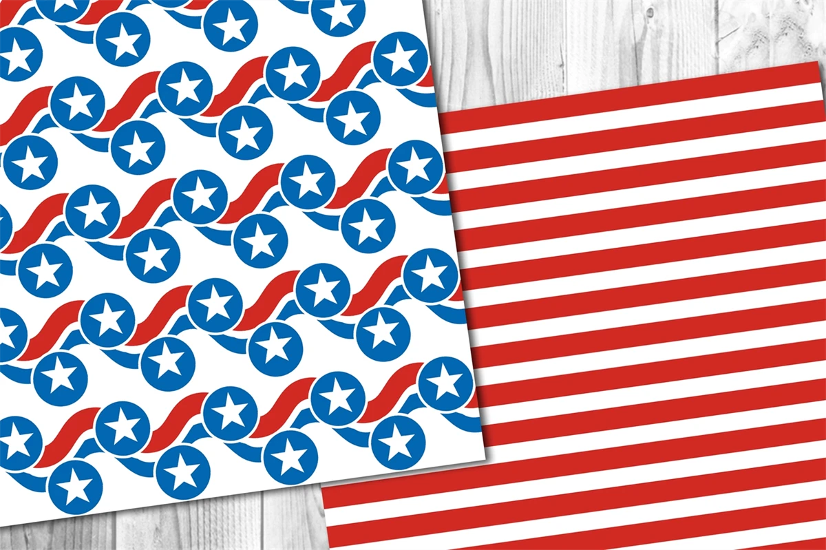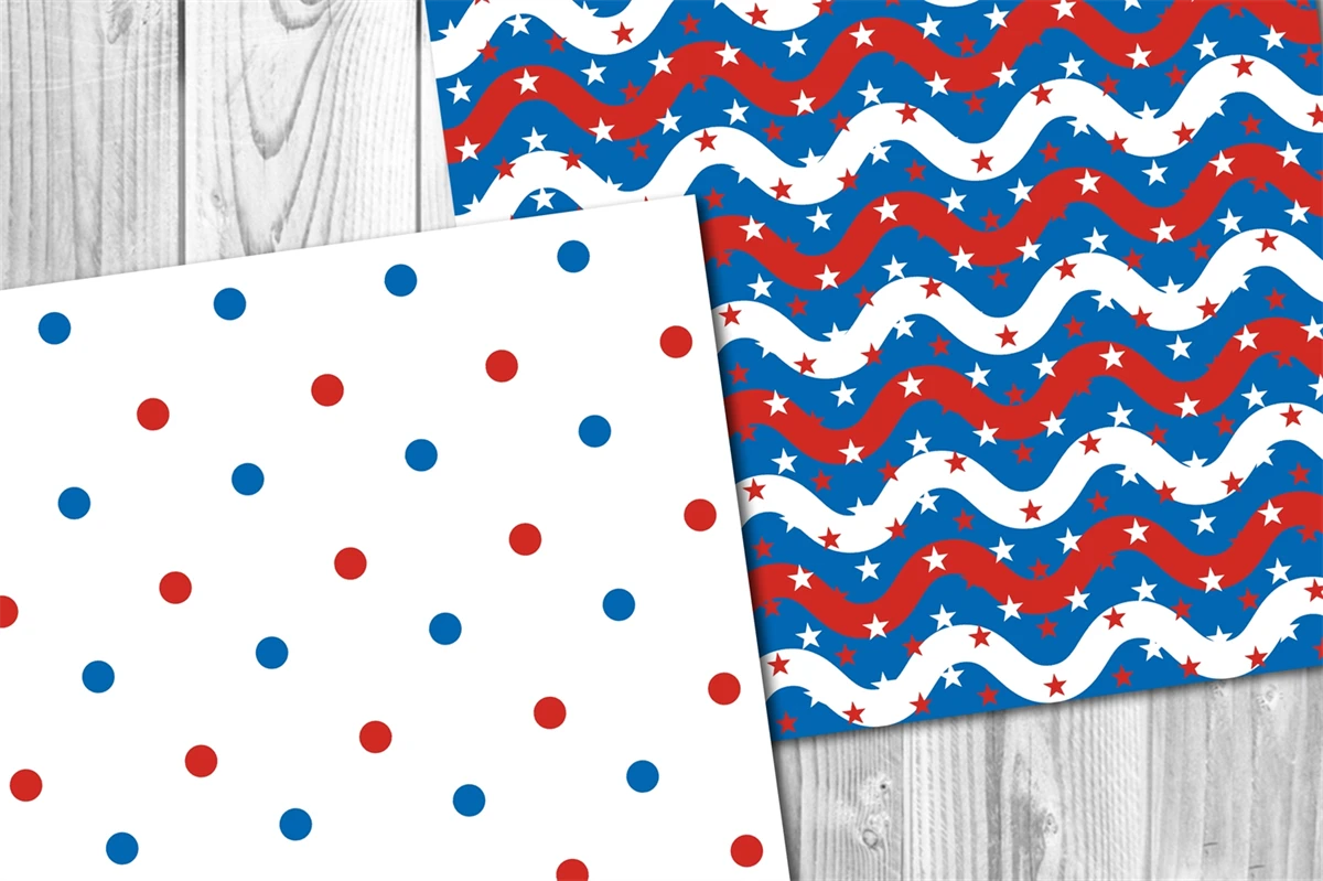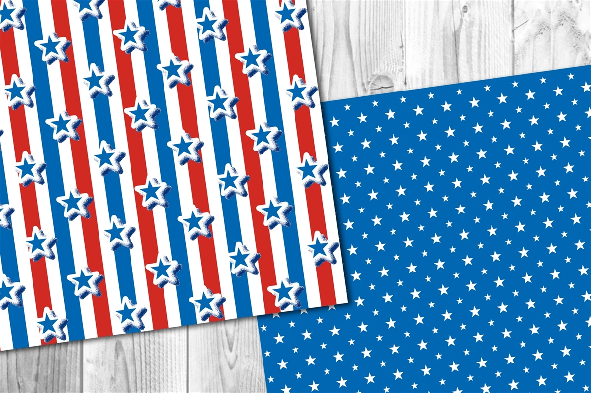 Memorial Day, Patriotic, Independence Day, 4th of July Digital Paper Set 8 - Stars & Stripes Red White and Royal Blue American Flag Theme Color Seamless Pattern Set