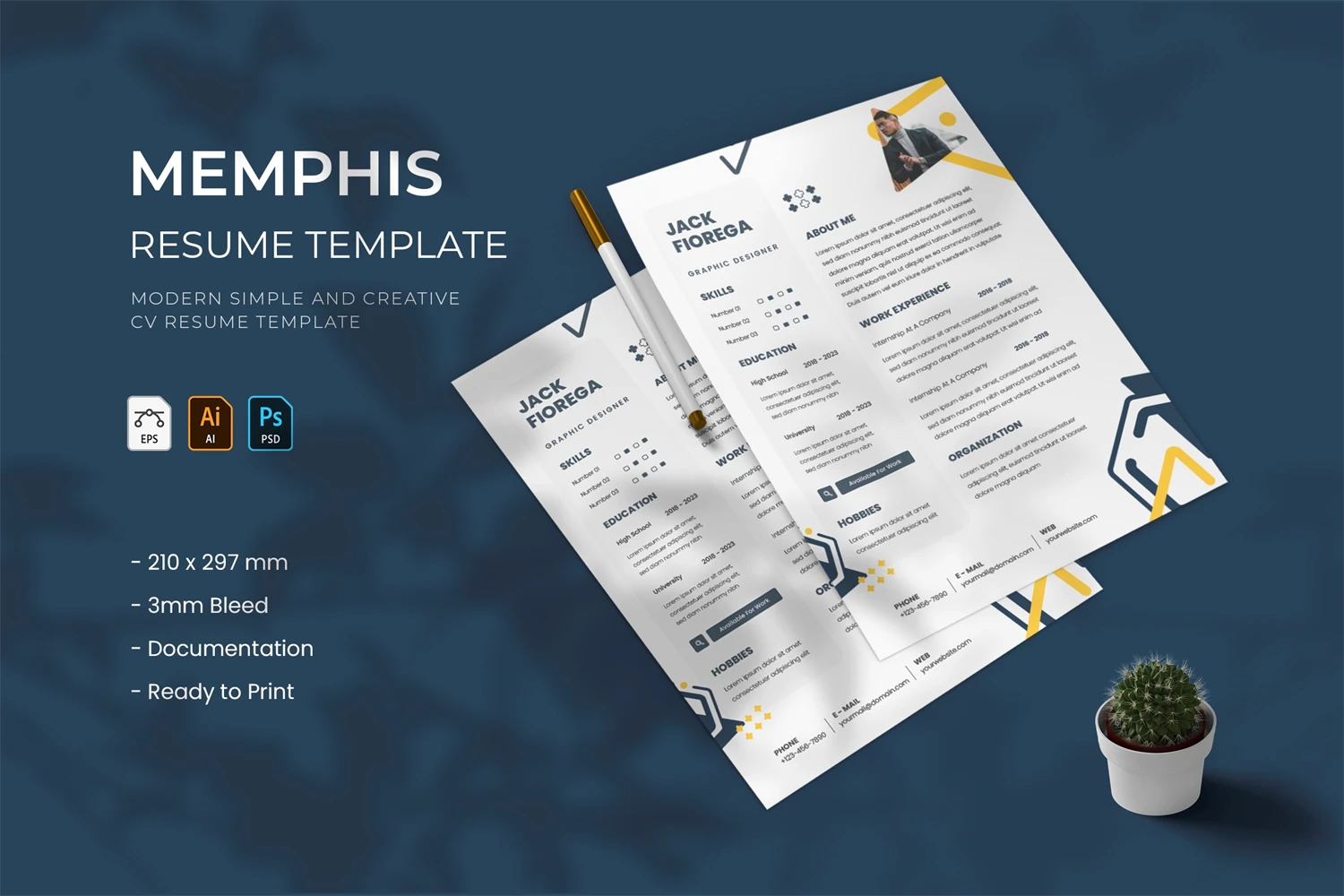 creative resume and cover letter template that will make your resume stand out from the hundreds of resumes employers get. It gives you the information you need, such as your name, contact information, social media links, education, experience, skills and interests. Also, it comes with three different color schemes.