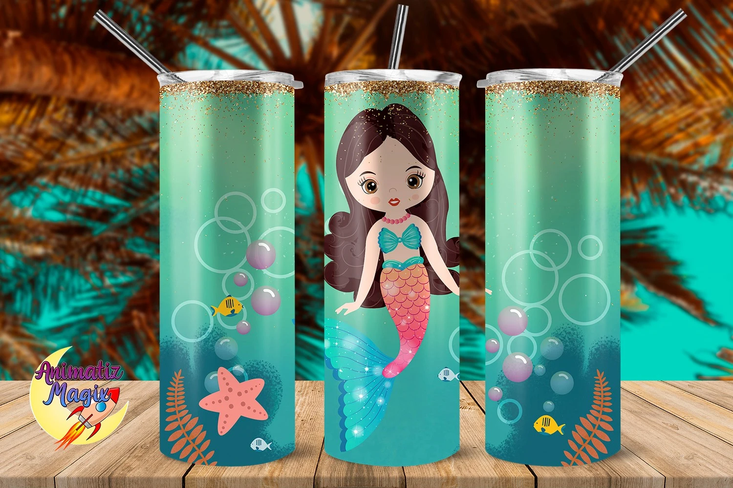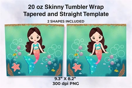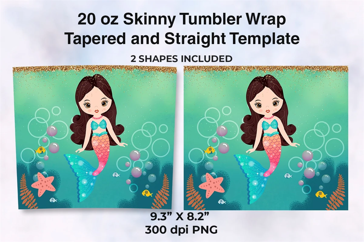 Mermaid Brown Hair 20oz Skinny Tumbler Wrap Sublimation