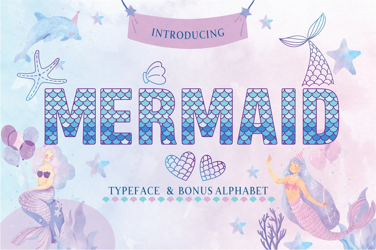 Mermaid is a cute and unique decorative font. This font will be an incredible asset to your fonts library, as it has the potential to create any project.