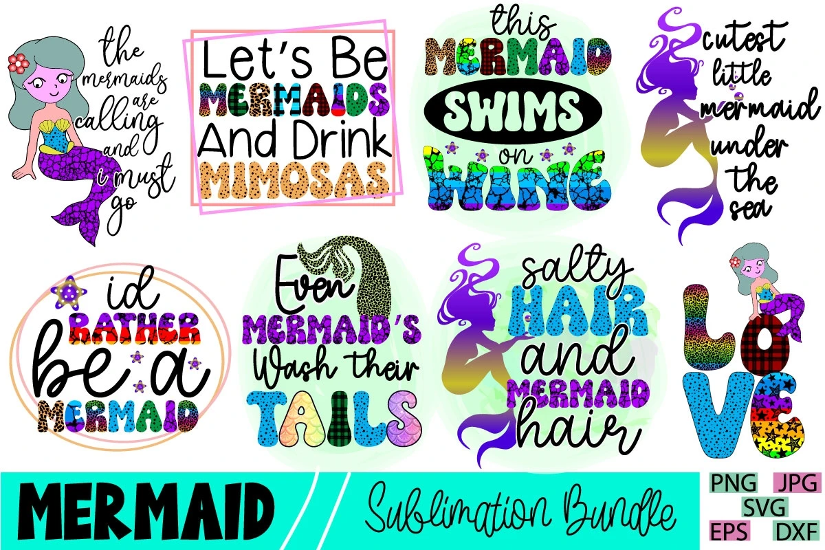 Mermaid Typography Craft T-shirt Sublimation Bundle