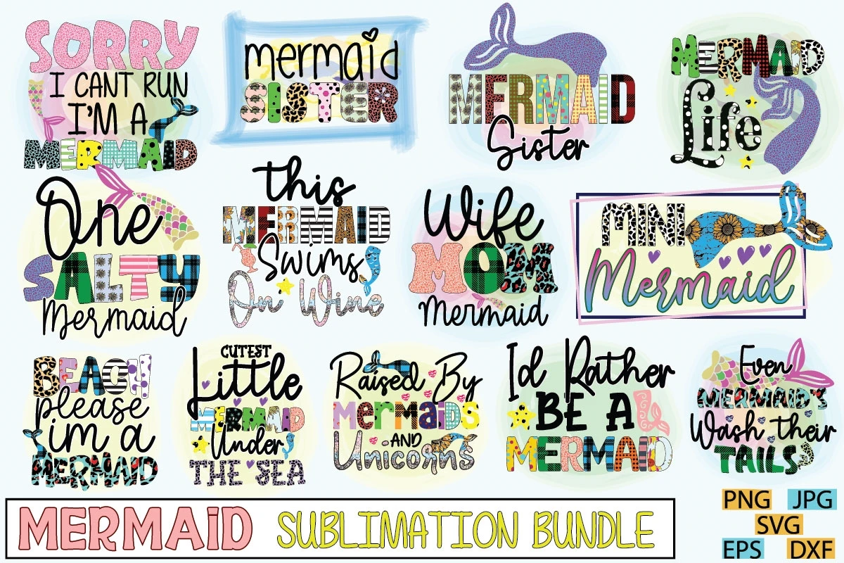 Mermaid Typography Craft T-shirt Sublimation Bundle