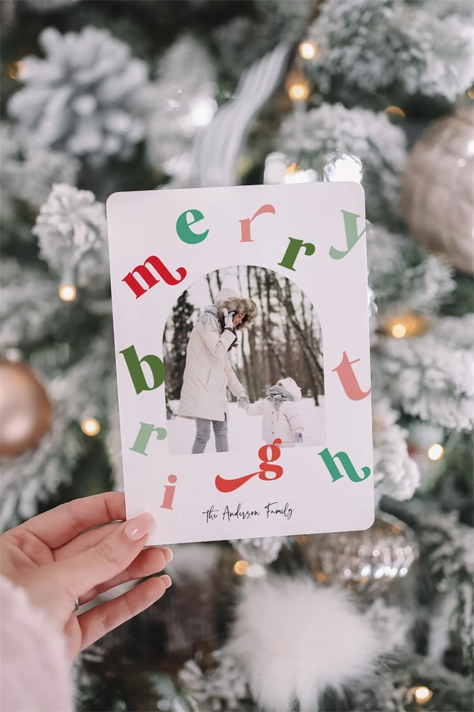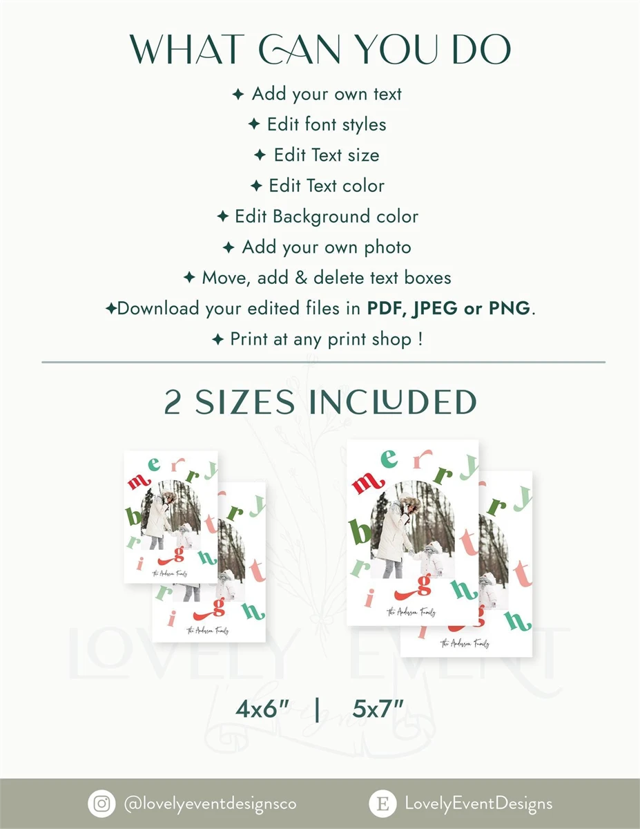 Merry and Bright Photo Holiday Card Template , Editable Merr