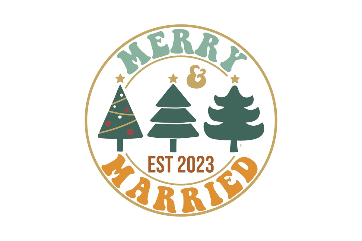 Merry and Married Est 2023 T-Shirt Ready Home Print.
