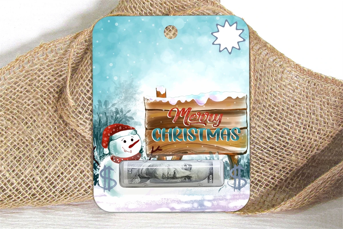 Merry Christmas Board Money Card PNG, Snowman, Snowy Forest