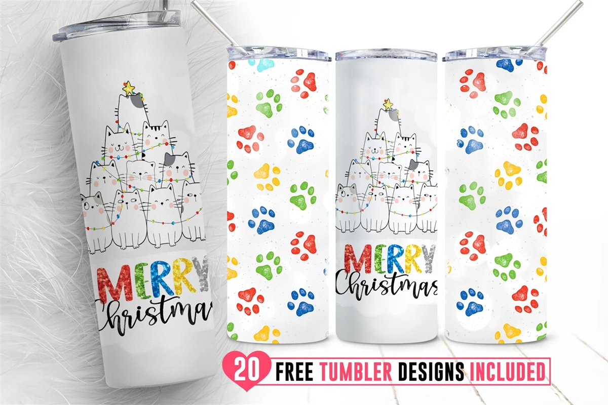 Merry Christmas Cats Skinny Tumbler Sublimation Christmas