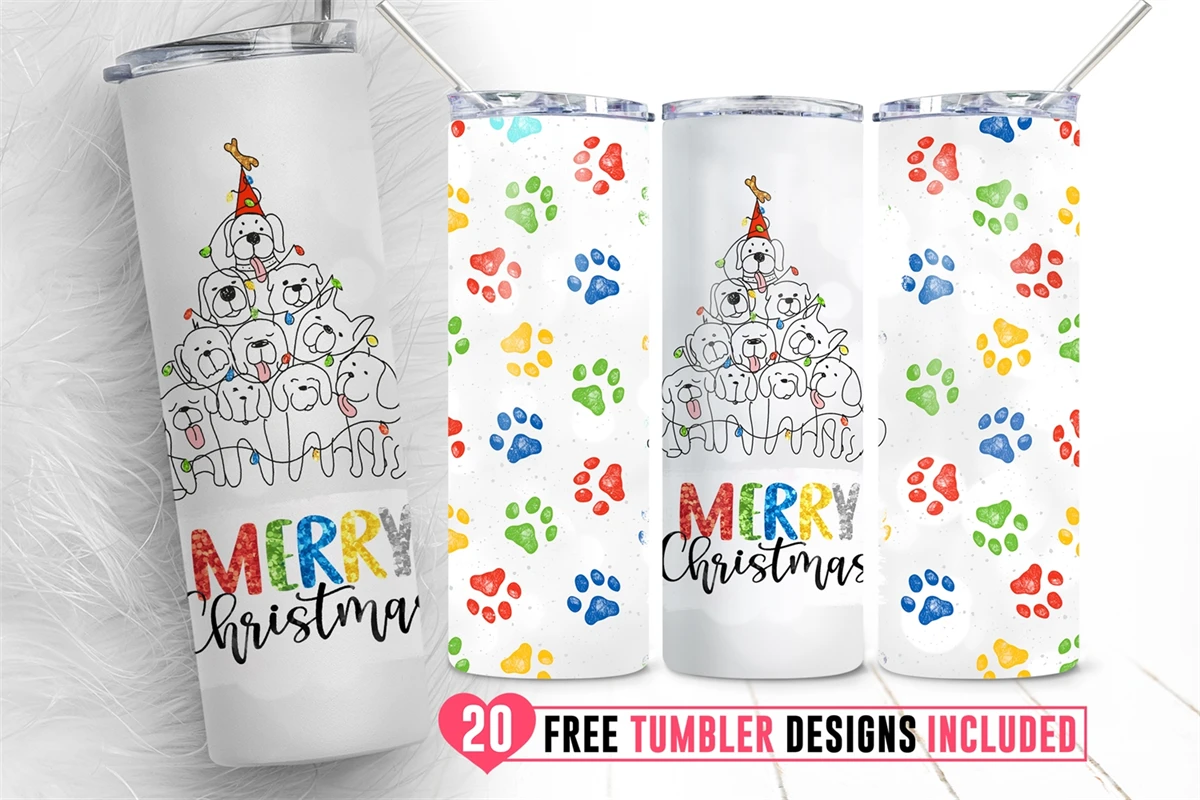 Merry Christmas Dogs Skinny Tumbler Sublimation Christmas