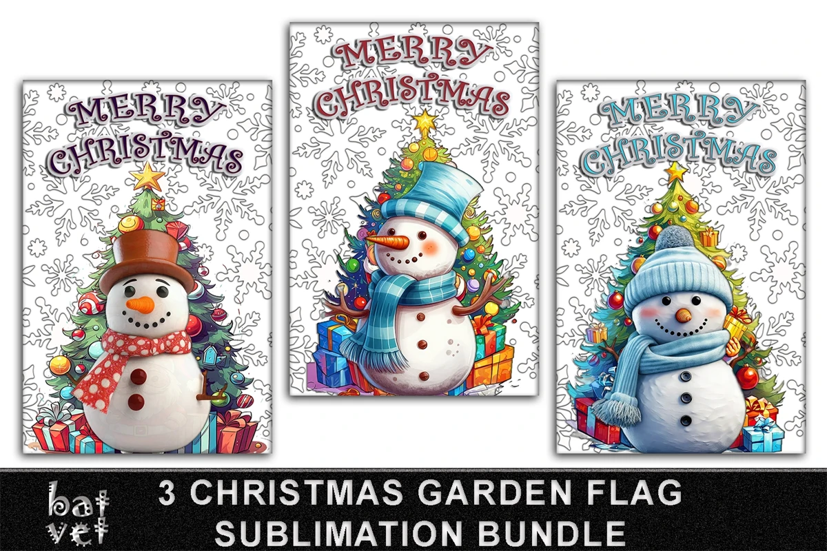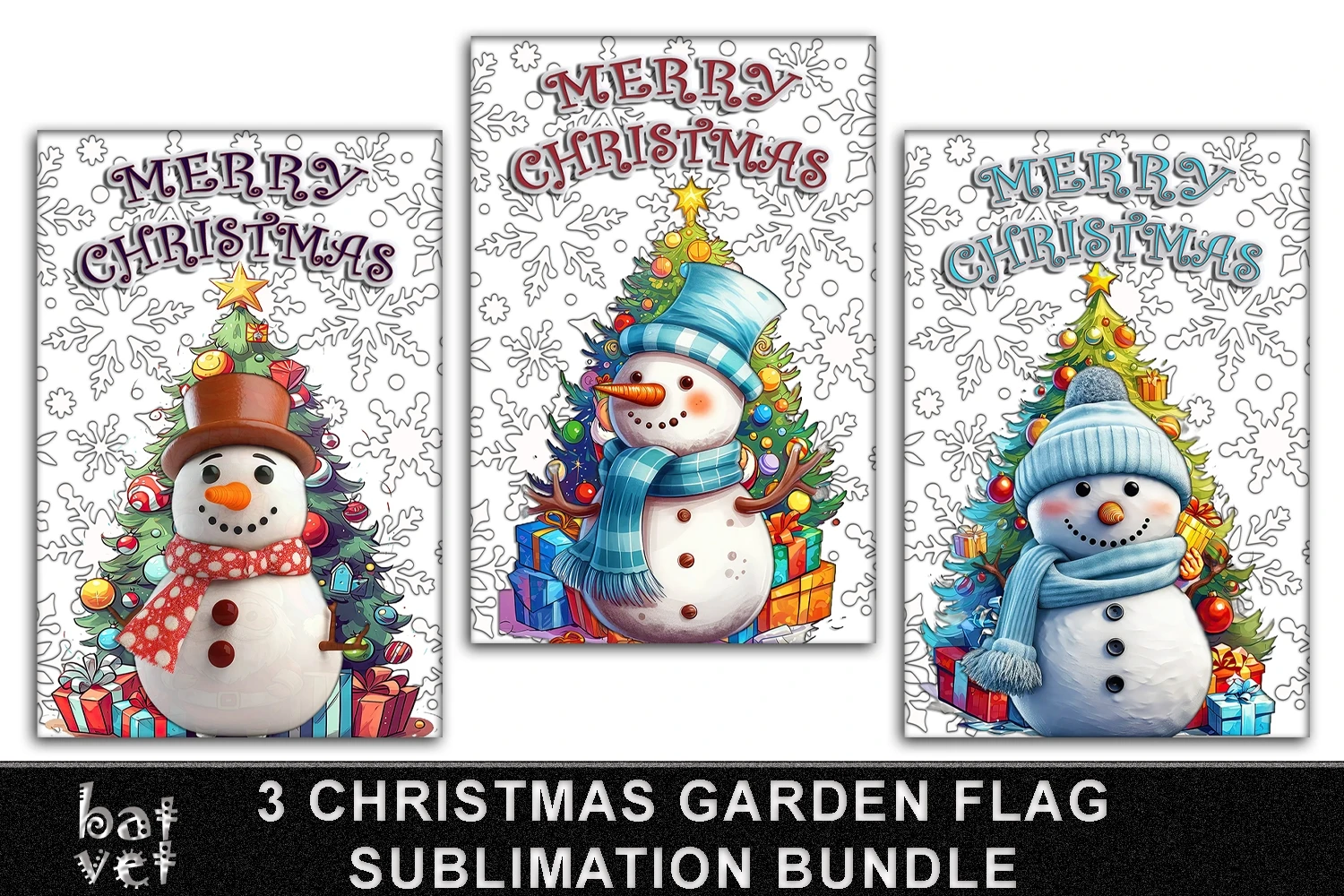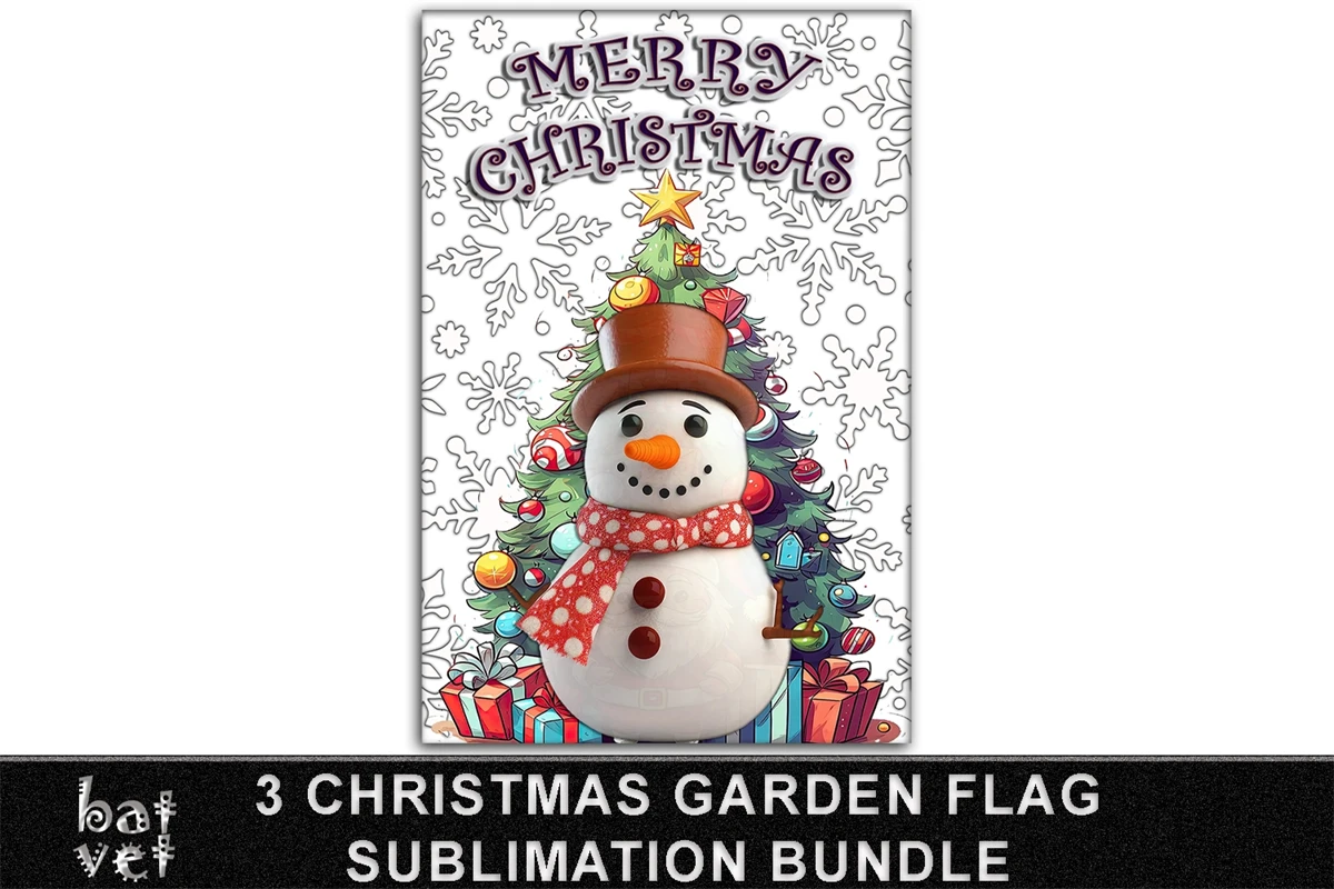 3 Merry Christmas Garden Flag Sublimation Bundle PNG