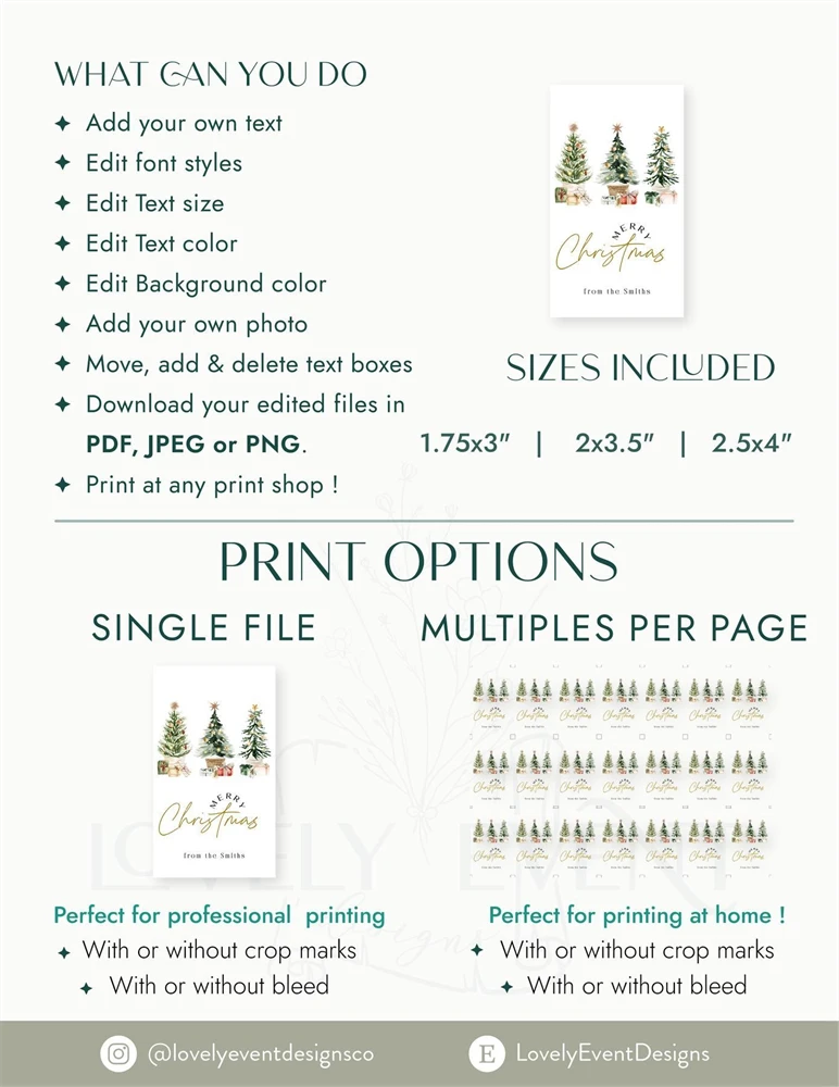 Merry Christmas Gift Tag Printable, Printable Christmas Gift
