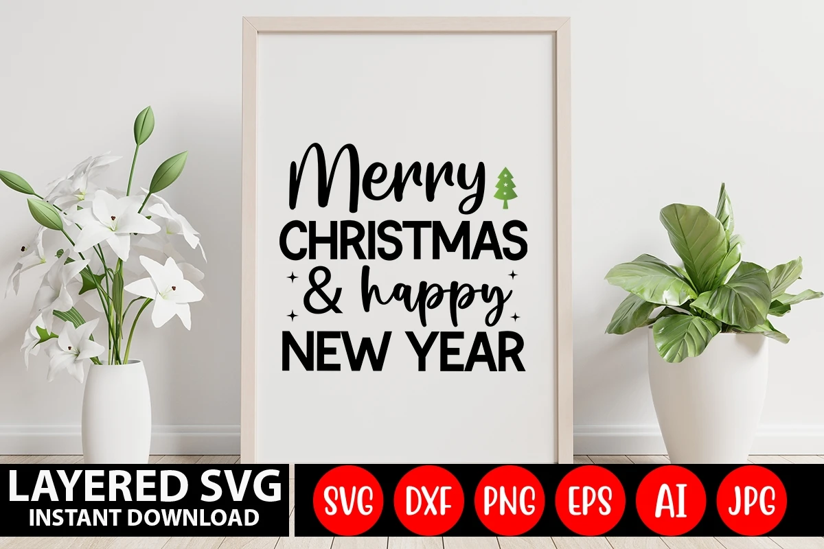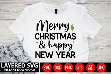 Merry Christmas & happy New Year SVG Design, SVG Cut File