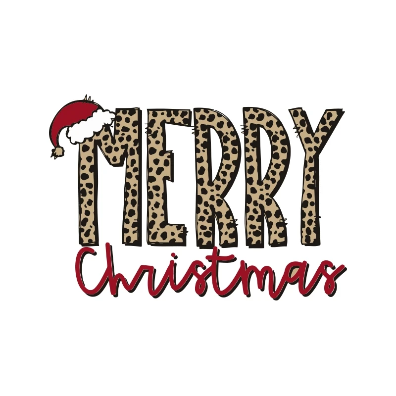 Merry Christmas Leopard Print Svg, Christmas Svg, Santa hat