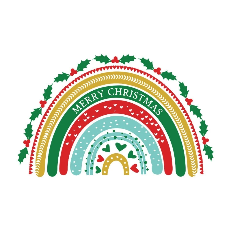 Merry Christmas Rainbow Svg, Rainbow Clipart, Christmas Svg