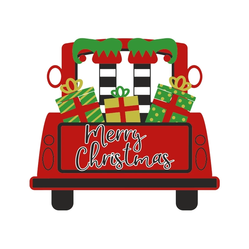 Merry Christmas Svg, Red Truck Svg, Elf foot Svg