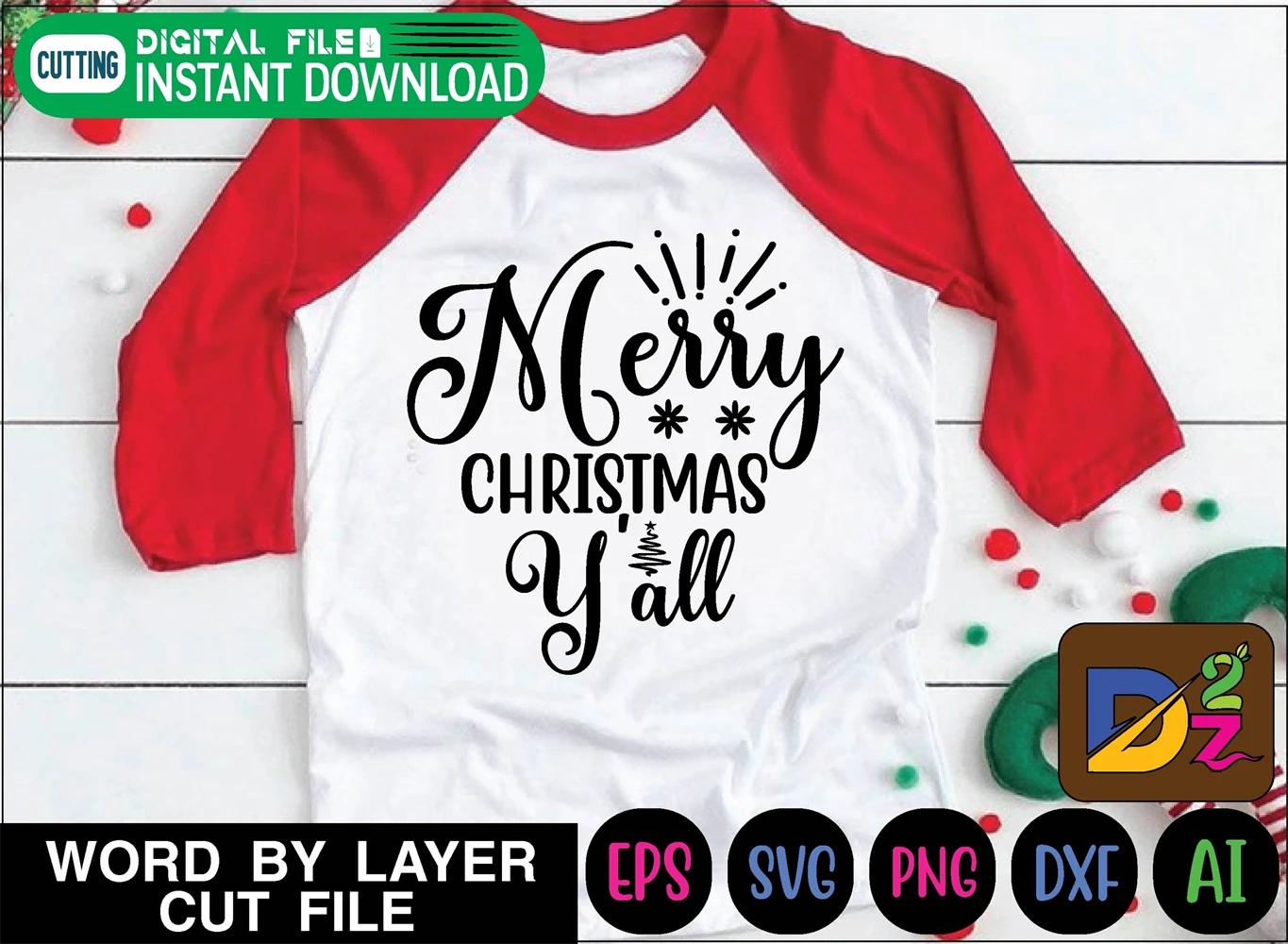 Merry Christmas Y'all t shirt design This is an instant download cutting file compatible with many different cutting software/machines like cricut Silhouette