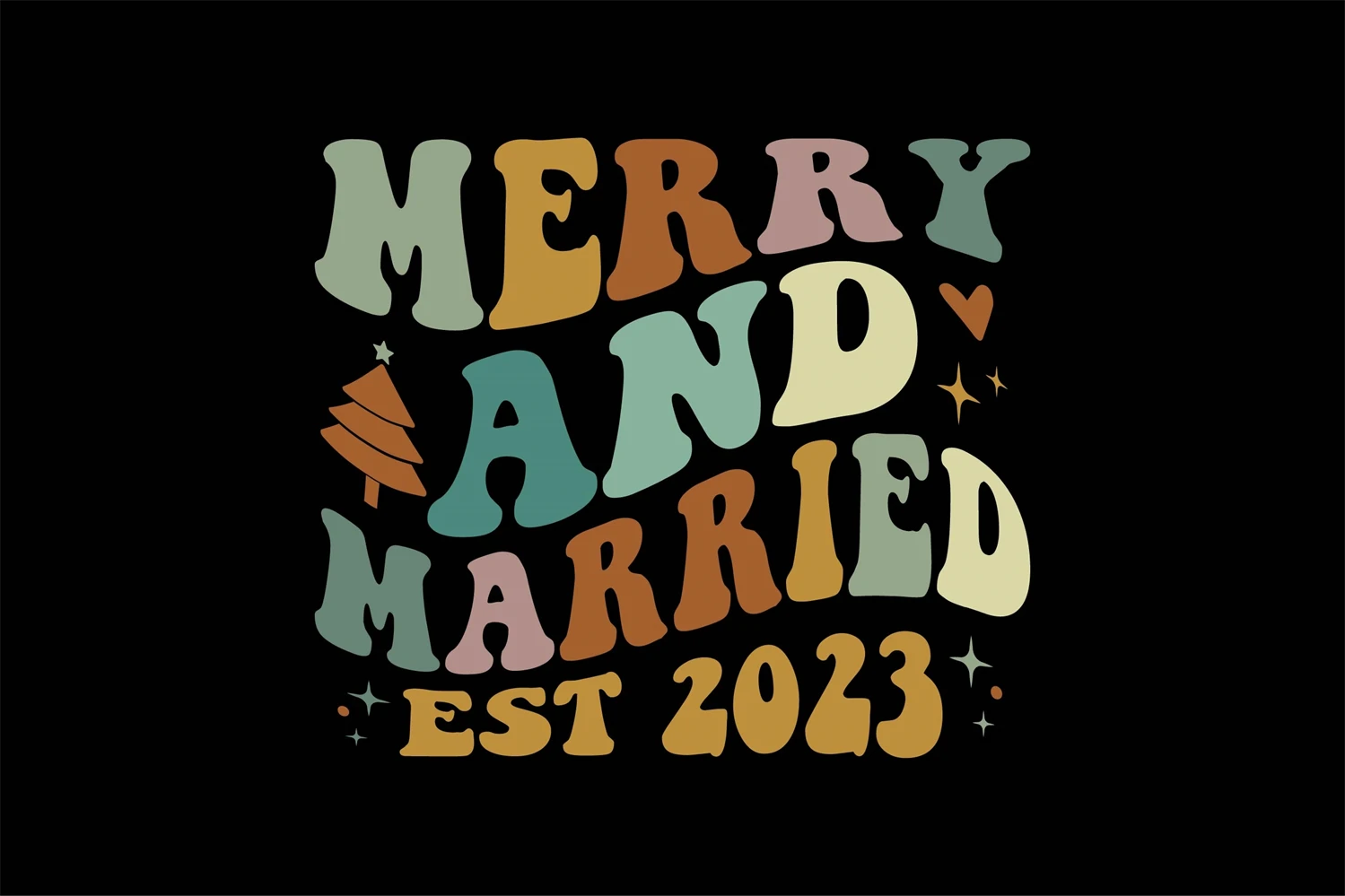 Merry & Married est 2023 T-Shirt Ready Home Print.