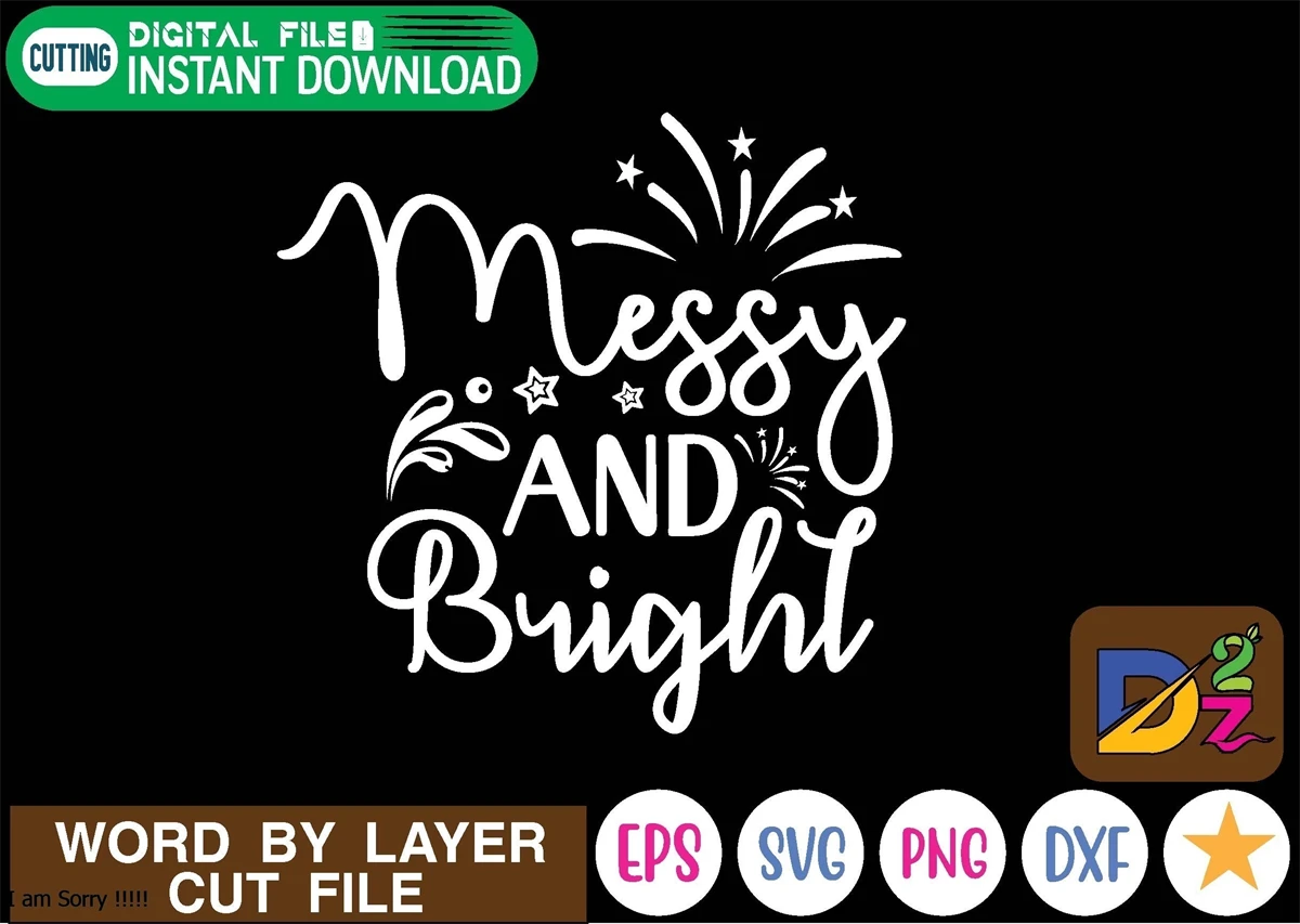 Messy and Bright t shirt design This is an instant download cutting file compatible with many different cutting software/machines like cricut Silhouette
