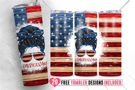Messy Bun American Mom Skinny Tumbler Usa Flag 4th of July