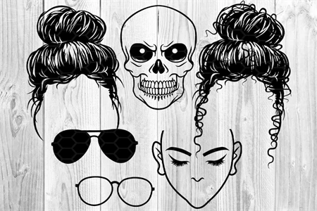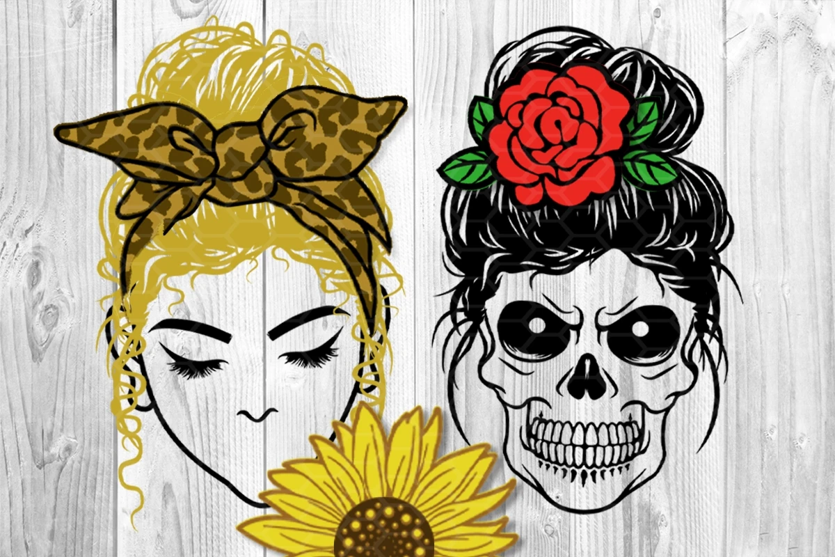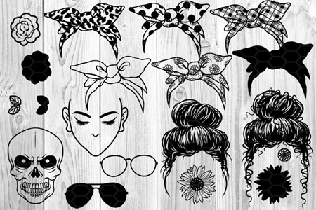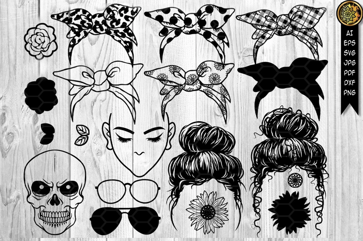 Set of Digital Download Messy Bun Bandana Mom Life SVG Cut Files for your creative DIY projects, and Home Decorations.