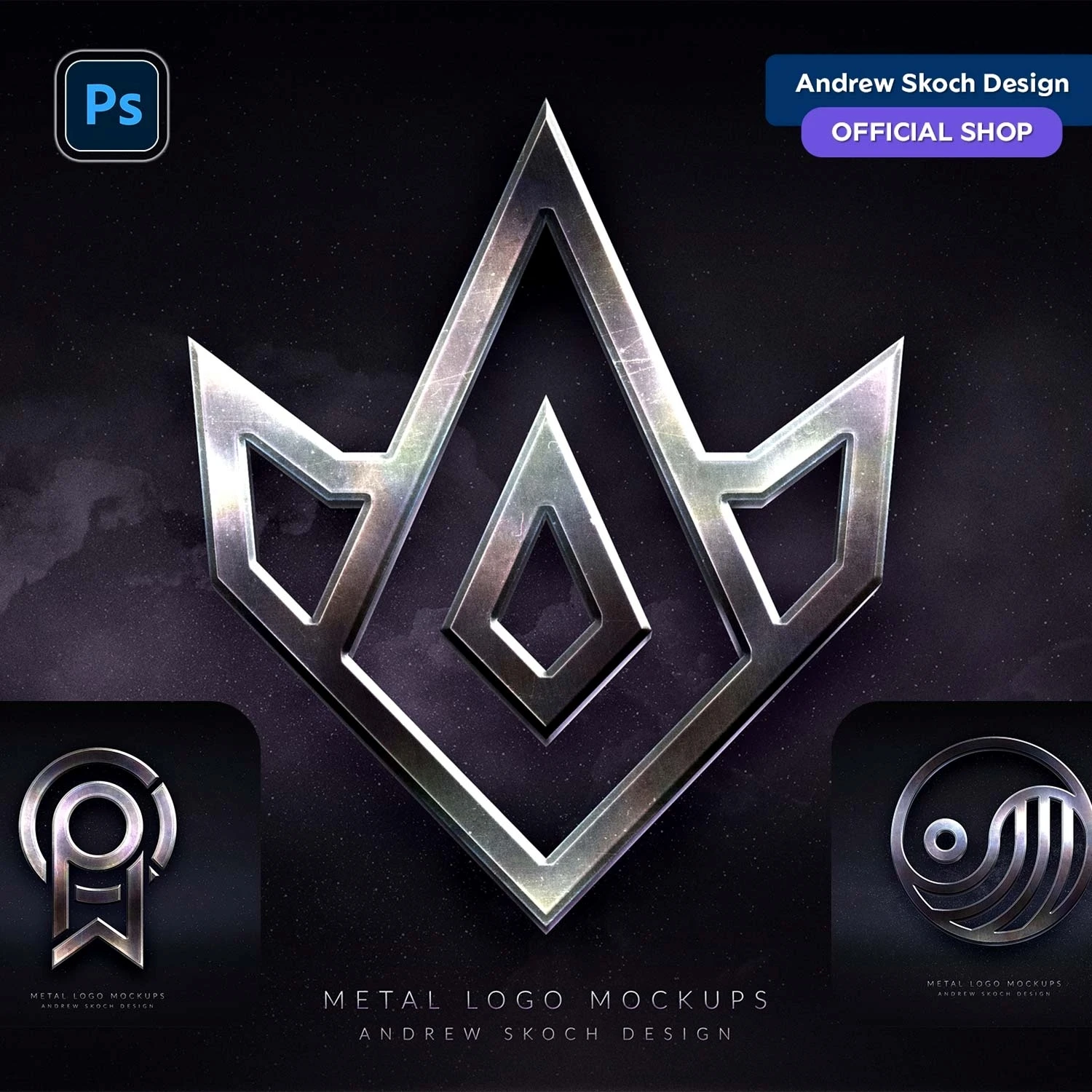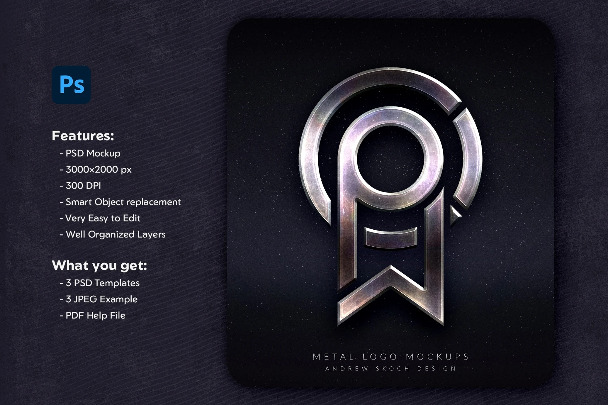 Showcase your logo designs with a bold and professional edge using Metal Logo Mockups. These 3 PSD templates feature a realistic metal effect complete with fine scratches, set against dark, textured backgrounds to create a striking and authentic look.