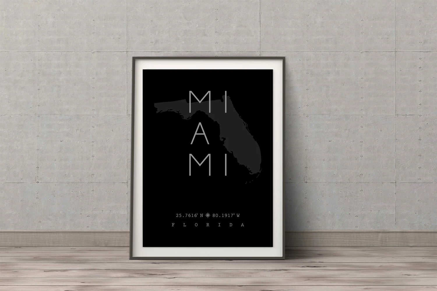 Miami Poster,Miami Map Print,Miami Coordinates,Florida Print