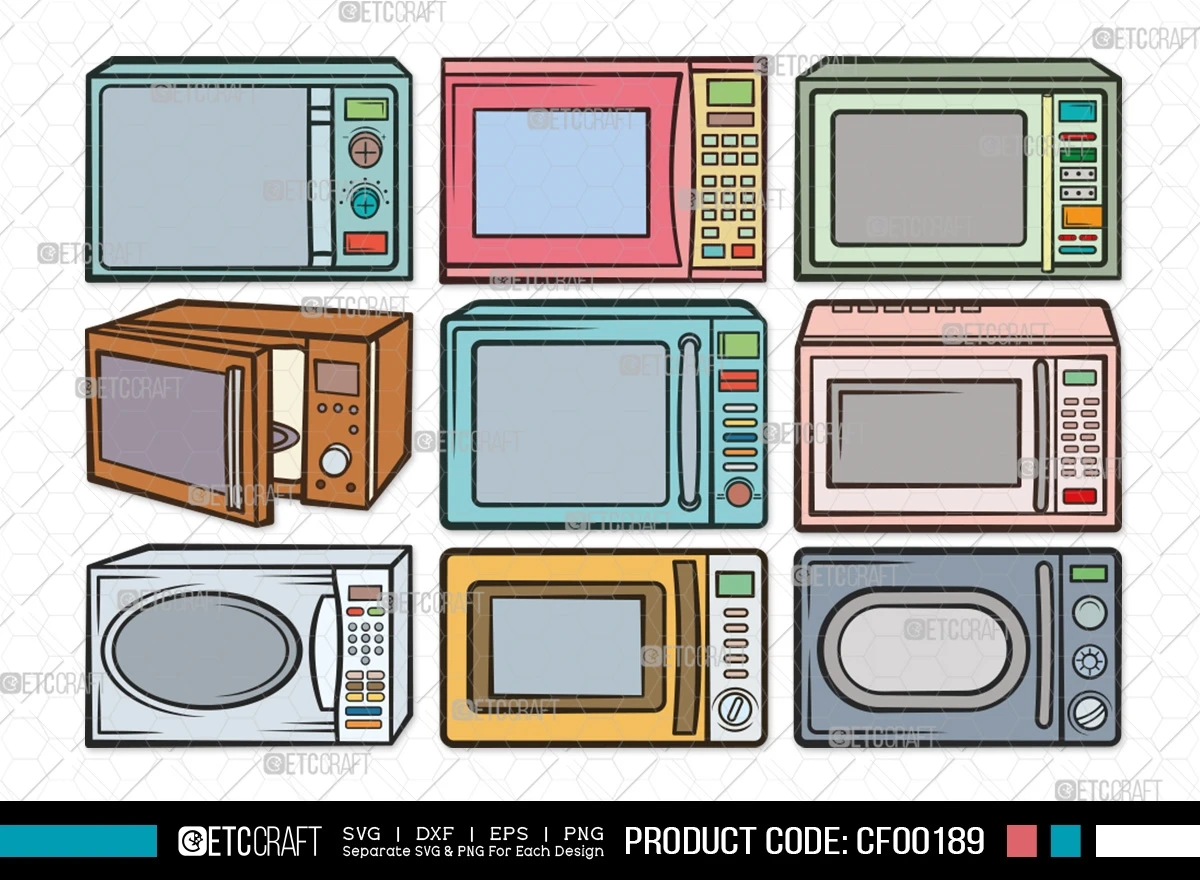 Upgrade your cooking and kitchen-themed projects with our Microwave Clipart Oven Cooking Kitchen Tools SVG Cut File Bundle. Download now to infuse creativity into your culinary world and make your designs sizzle!