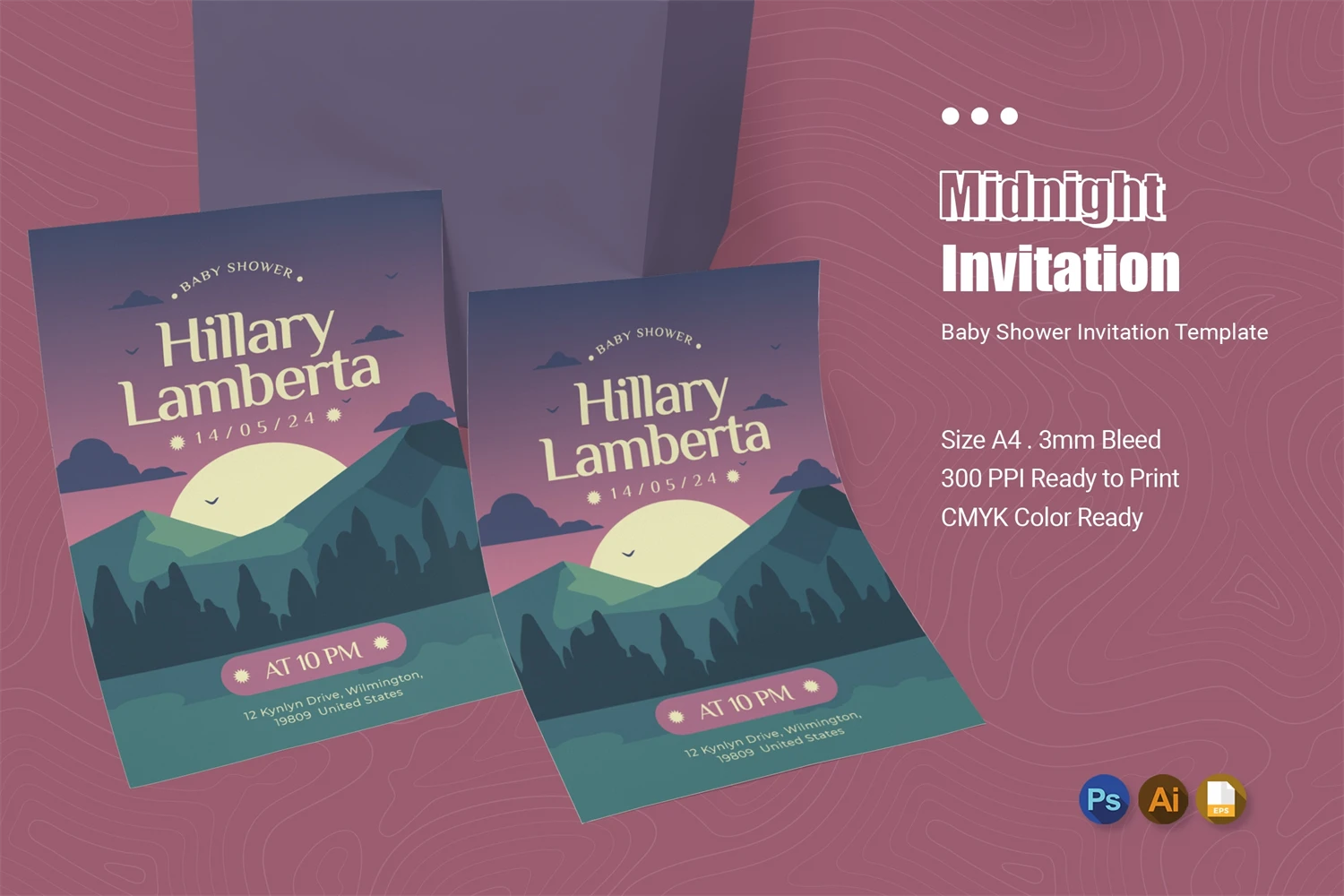This baby shower invitation card template makes your invitation card look enjoyable, professional, and also simple. It's perfect for parents who want to celebrate the birth of their baby. You can easily to customize to your needs if using **illustrator** you just need to Drag your Image, select the image and placeholder, then right click select Make