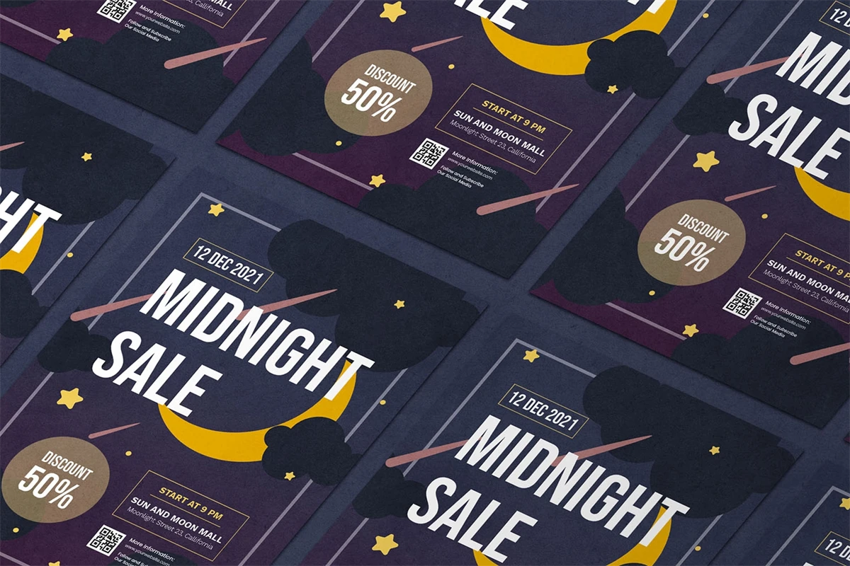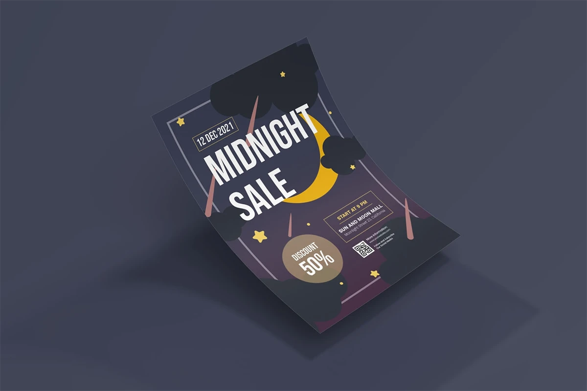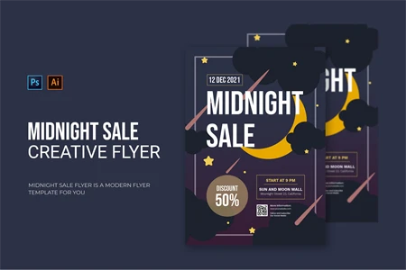 Midnight Sale - Flyer. This Flyer template is designed for your company's business needs. very clean and elegant, and also easily edited and adjusted to your liking