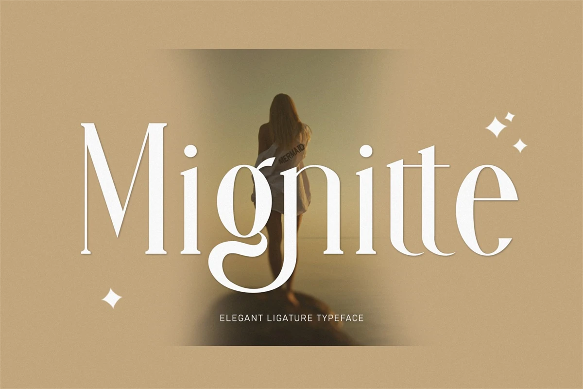 **Mignitte** is a elegant and classy serif typeface This font is both modern and nostalgic and works great for logos, magazine, social media. Already matched up and ready to be used together for your next design! For those of you who are needing a touch of elegant, stylish, classy, chic and modernity for your designs, this font was created for you!