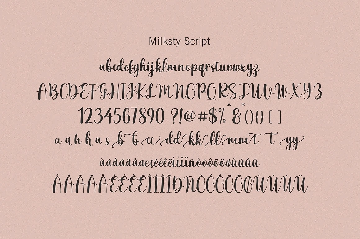 The Milksty font style comes with great character. Ideal for logos, name tags, handwritten quotes, product packaging, merchandise, social media and greeting cards. It contains a complete set of lowercase and uppercase letters, a wide variety of punctuation marks, numbers, and supports multi-language. It is also easy for you to access this font because I have provided PUA unicode (font-specific code), with many alternative characters. This package is fully accessible to craftsmen or designers.