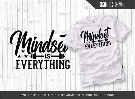 Elevate your fitness journey and inspire others with the Mindset Is Everything SVG Bundle. Unleash the power of your mindset and make a statement with this collection of motivational designs. Order now and let your t-shirt do the talking!