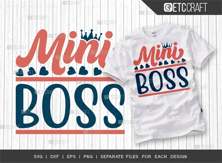 The Mini Boss SVG Bundle, is a collection of trendy and great t-shirt designs. With unique and stylish graphics, this bundle is perfect for adding a touch of style to your apparel. Check out the key features: