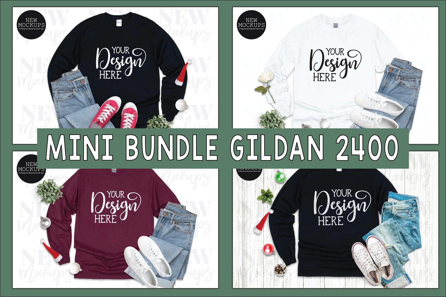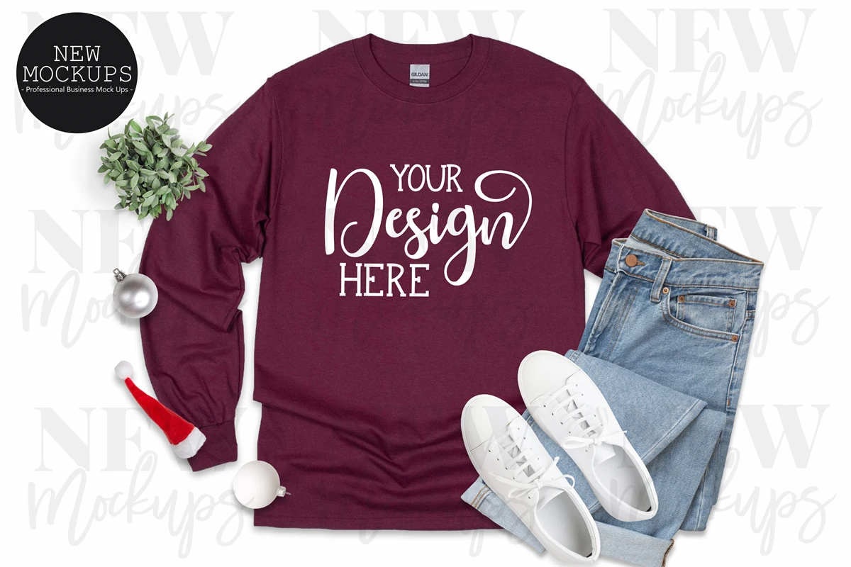 Gildan 2400 White, Black, Maroon Long sleeve Mockups for christmas!!
