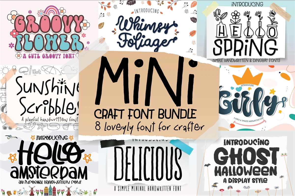 Get creative with our Mini Craft Font Bundle! This handcrafted collection offers a delightful range of whimsical, playful, and charming fonts that will add a touch of uniqueness to your DIY projects. Whether you're crafting greeting cards, scrapbooking memories, or designing captivating logos, these artistic and versatile fonts are your perfect companions. Embrace the vintage-inspired decoratives or the elegant script fonts and let your creativity soar to new heights