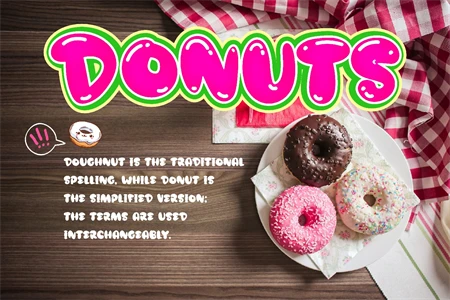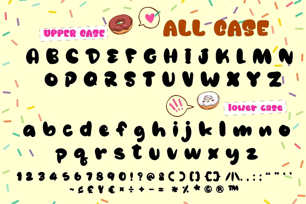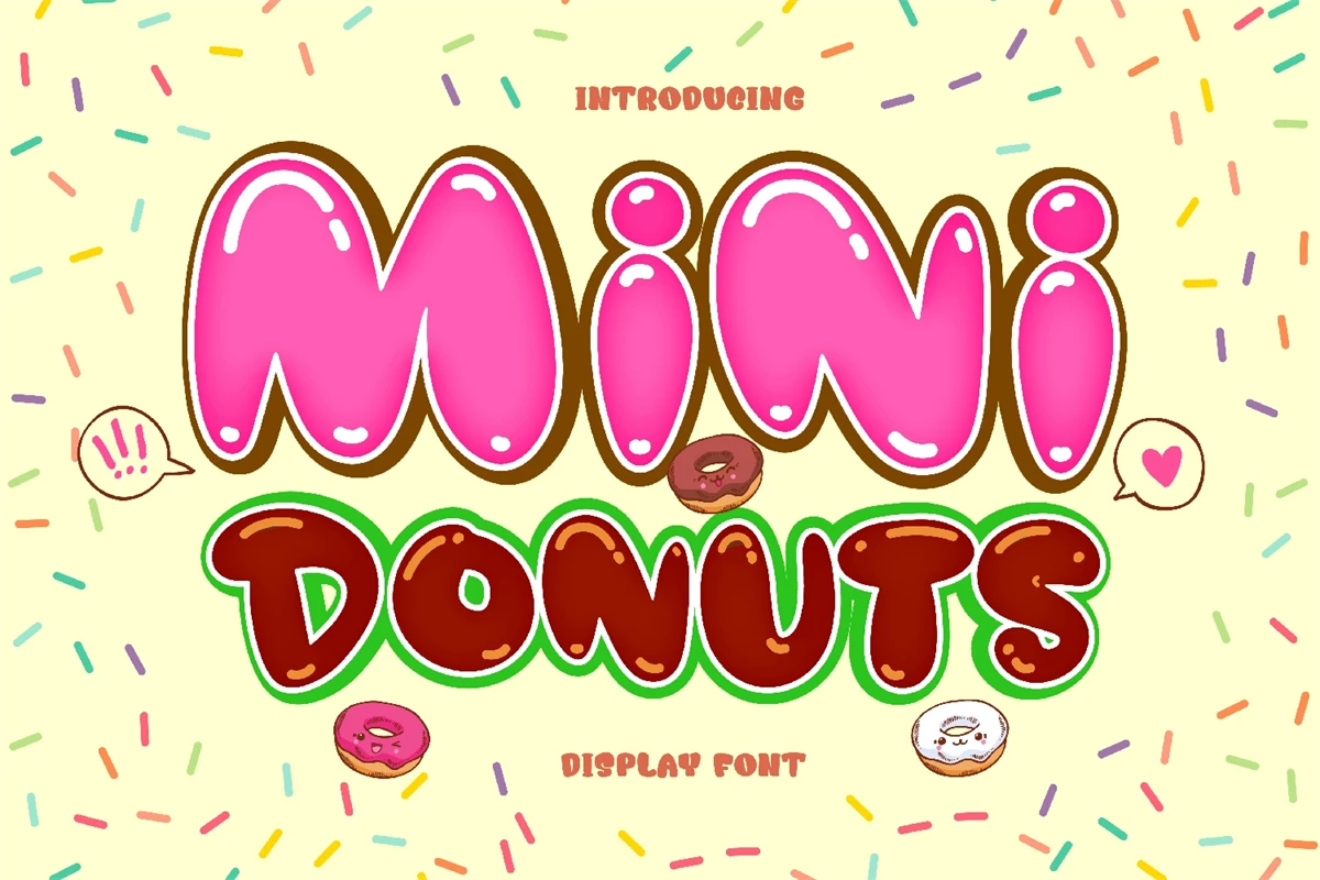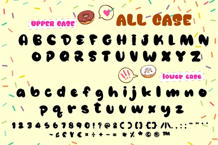 Mini Donuts is a cute, cool, and friendly display font. It embodies playfulness and authenticity and is the perfect choice for any childrens activity or school project. Add this chunky lettered font to your designs and notice how it makes them come alive!