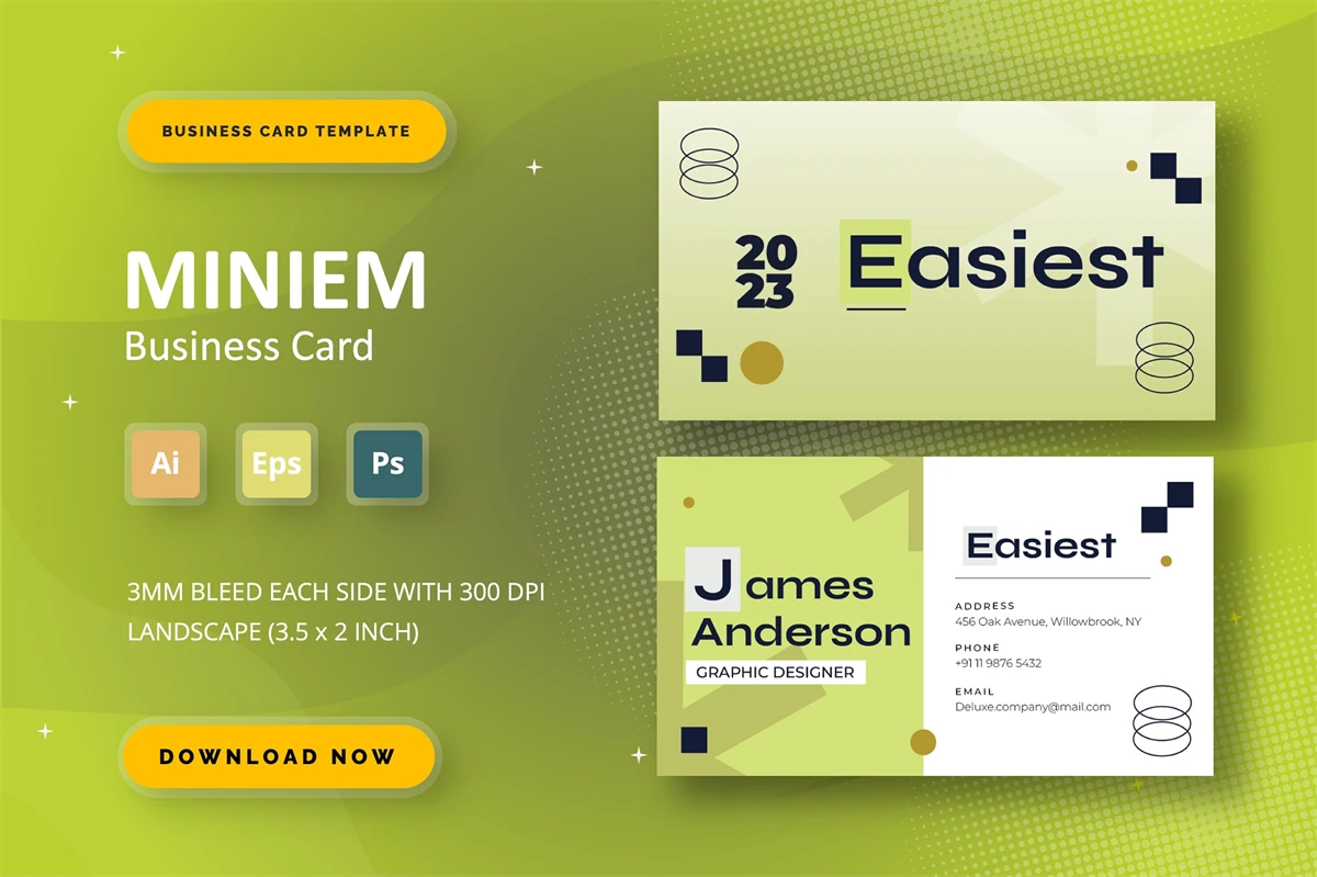 Miniem Shapes - Business Card This business card design template is more than just contact information, it's a visual representation of your brand and expertise. Improve your first impression by letting your business card speak for you in terms of style and professionalism.
