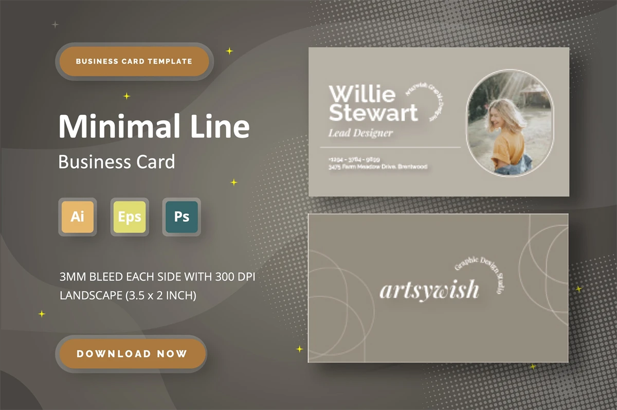 Your business cards will look professional if they have strong fonts and modern, simple, and unique layouts. It can be printed in portrait format. This template is good for fashion, lifestyle, photography, and architecture.