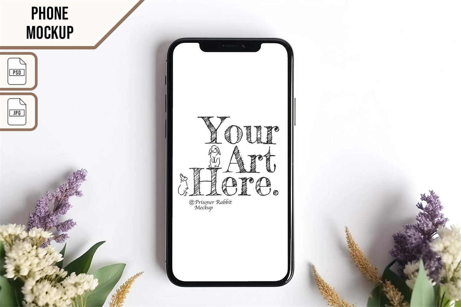 Phone mockup with Photoshop (PSD) template for interface design UI/UX, pattern, art and graphic designs.