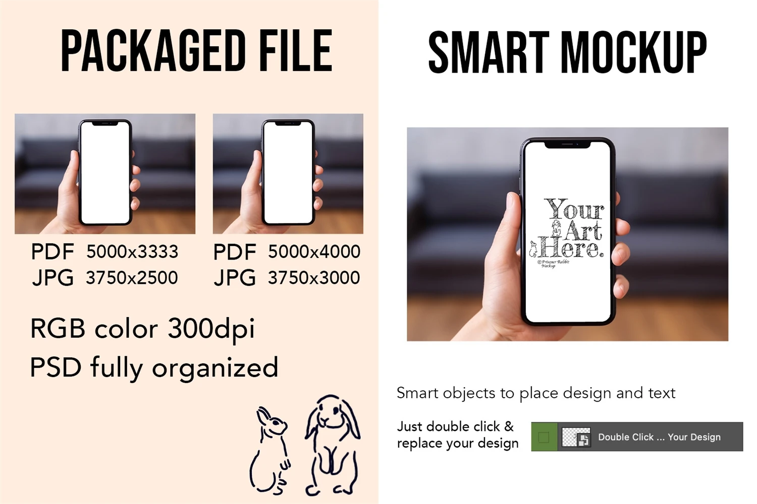 - Photoshop CC .PSD file. File is set up with Smart Objects.
