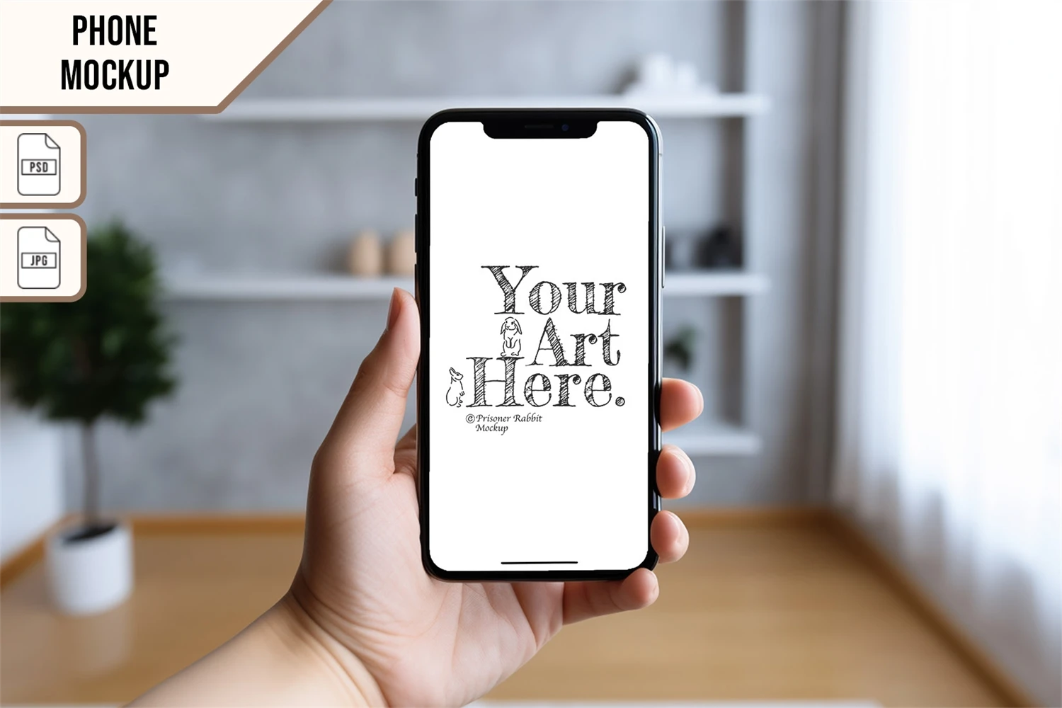 This mock-up features mobile device template with minimal background.