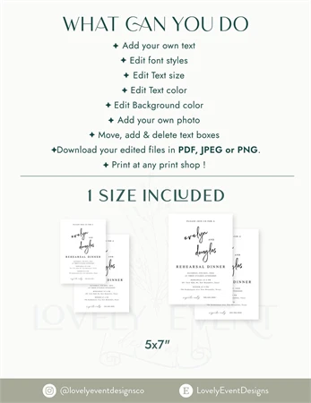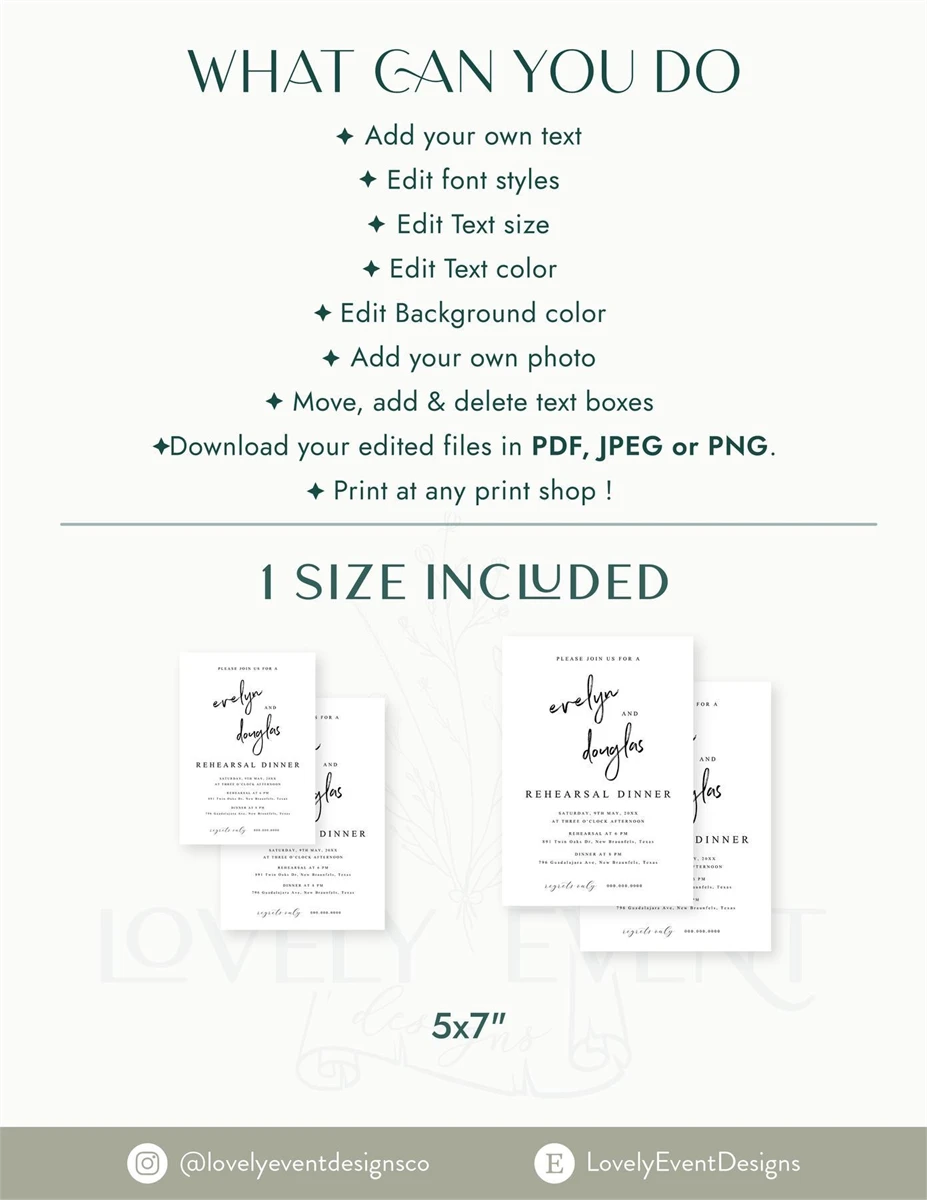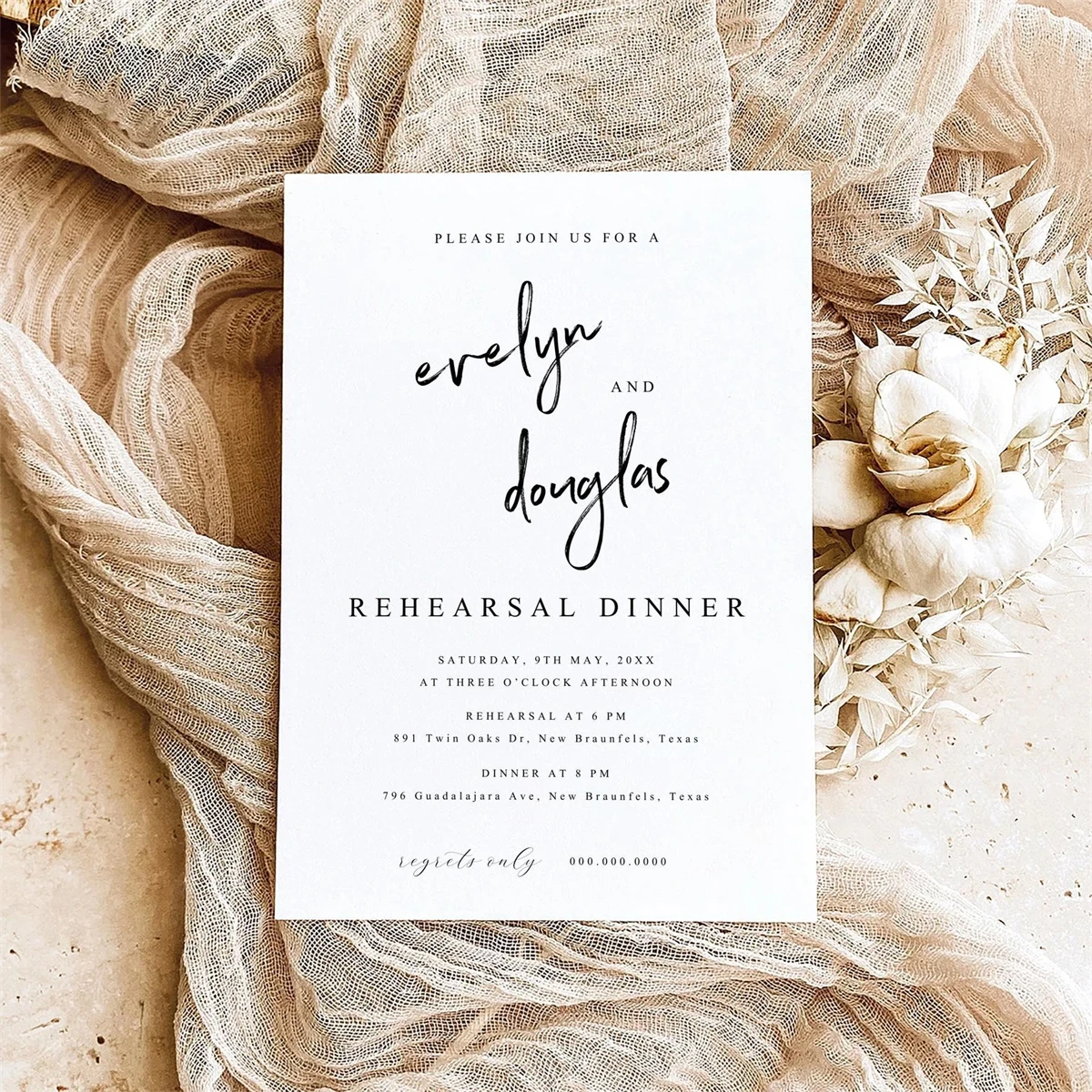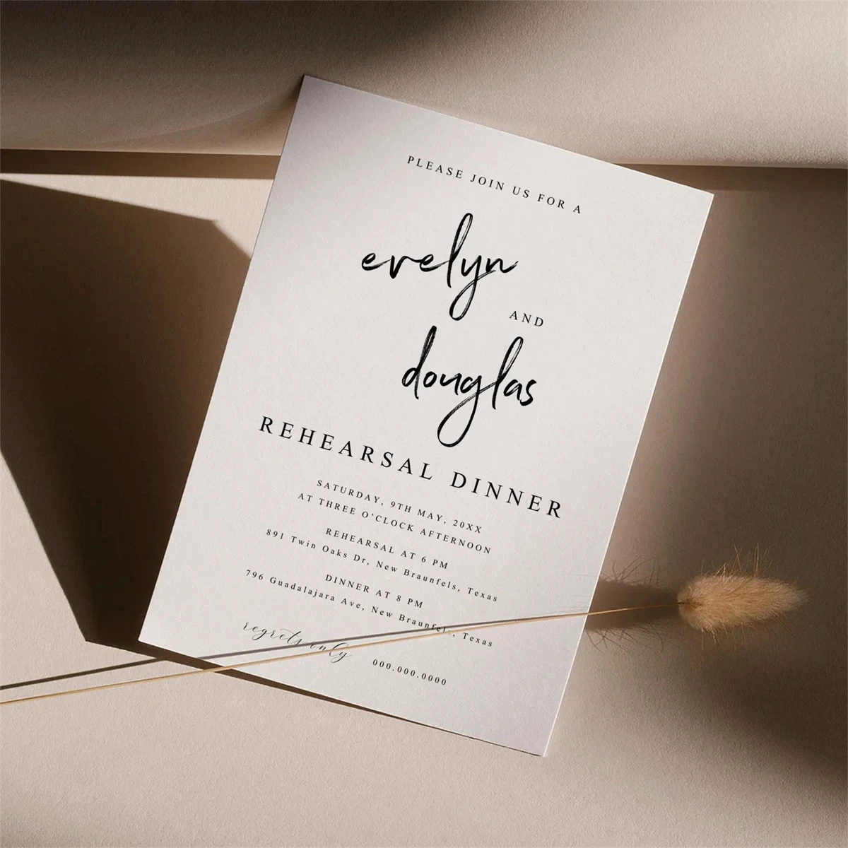 Minimal Wedding Rehearsal Template, Minimalist Rehearsal Din