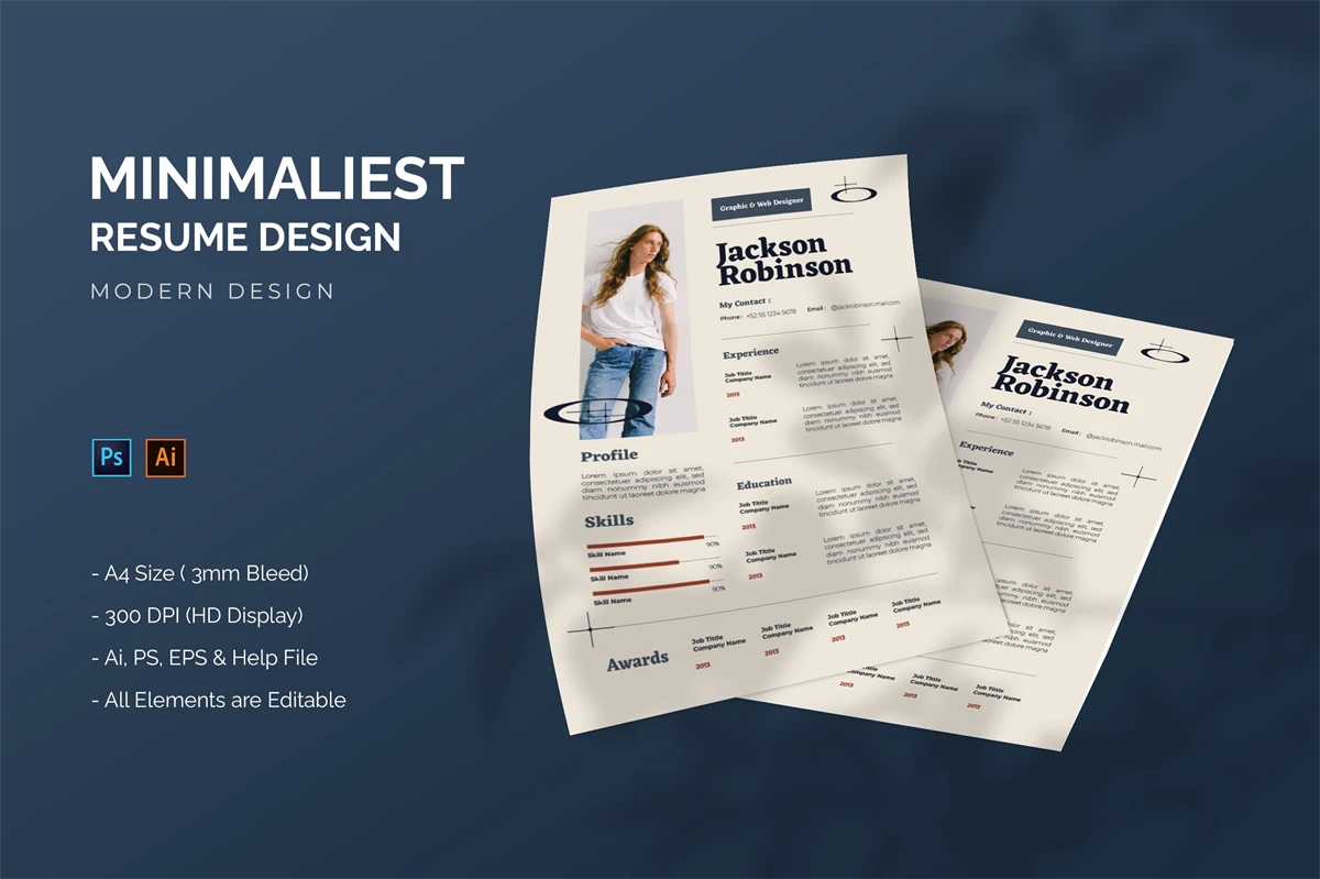 This is **Minimaliest - Resume Template** Get it now!, CV Resume for All business and personal needs. This design is great for your business and will make your interest, elegant, and easily editable according to your needs (**Adobe Illustrator, Adobe Photoshop**). You can use this CV Resume for personal purposes, or company purposes, I hope you enjoy this, Hope you Like it, and dont forget to rate it, Thanks.