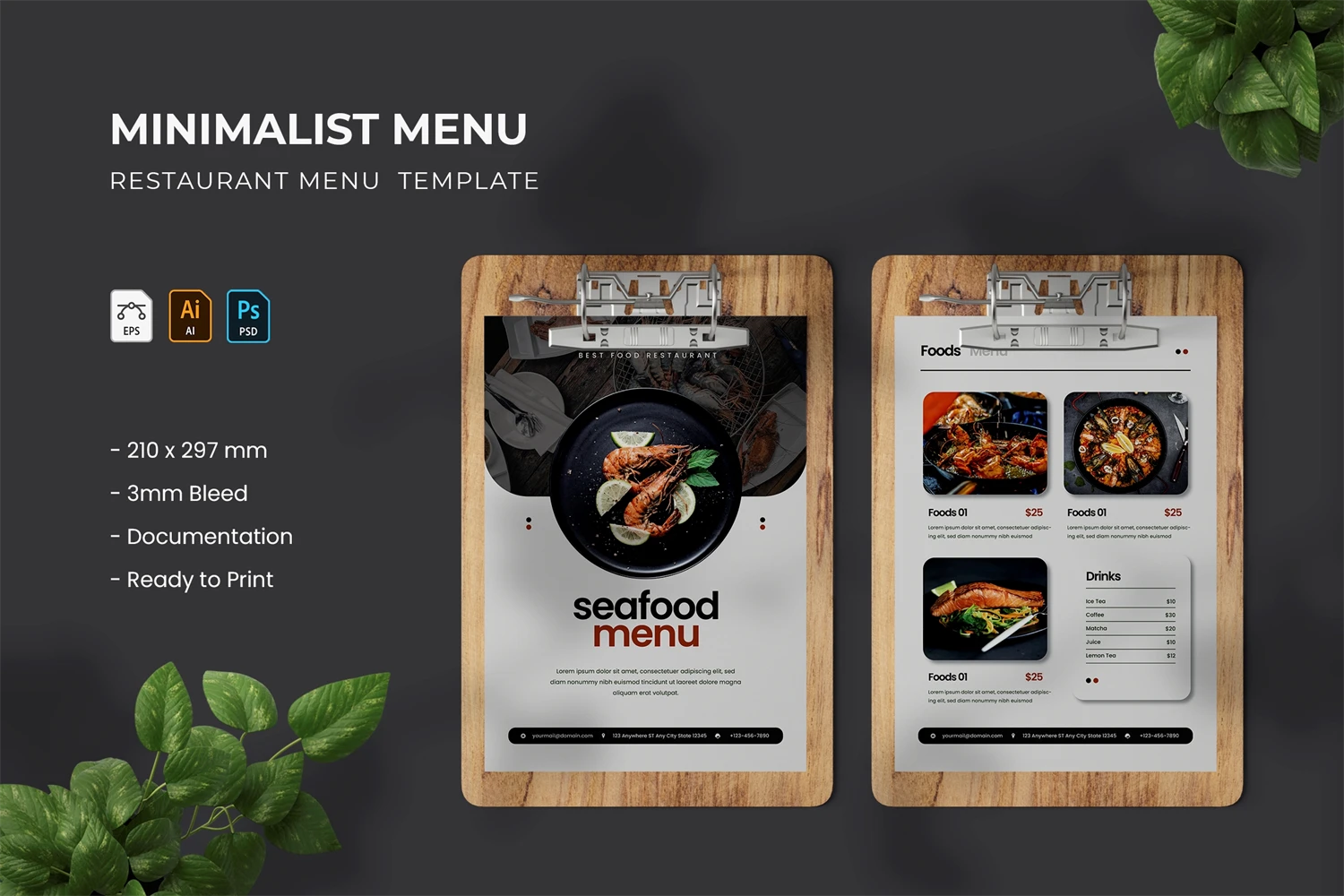 Menu Restaurant Template is a menu template for people who sell, business, or run a food-related business. The layout makes it easy to find the menu you want. Too many choices can make customers feel overwhelmed, so its better to limit the number of choices, colors, and other design elements so that customers can easily scan and order items.